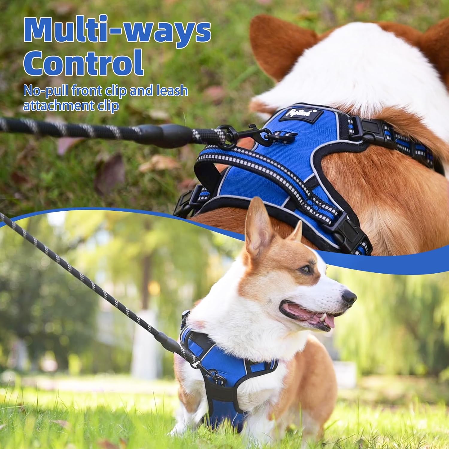 PUPTECK No Pull Dog Harness for Large, Adjustable Reflective Dog Harness with Handle Easy Control, Comfortable Soft Padded Pet Vest Harness for Extra Large Dogs, Blue XL