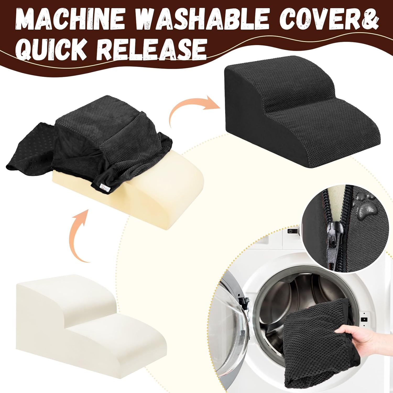 - Double Sided Anti Slip: The dog steps cover is made of corduroy with greater friction than other fabrics, which provides extra grip while in use, the bottom features nonslip rubber dots, preventing pets from sliding while climbing, providing pets with double safety protection