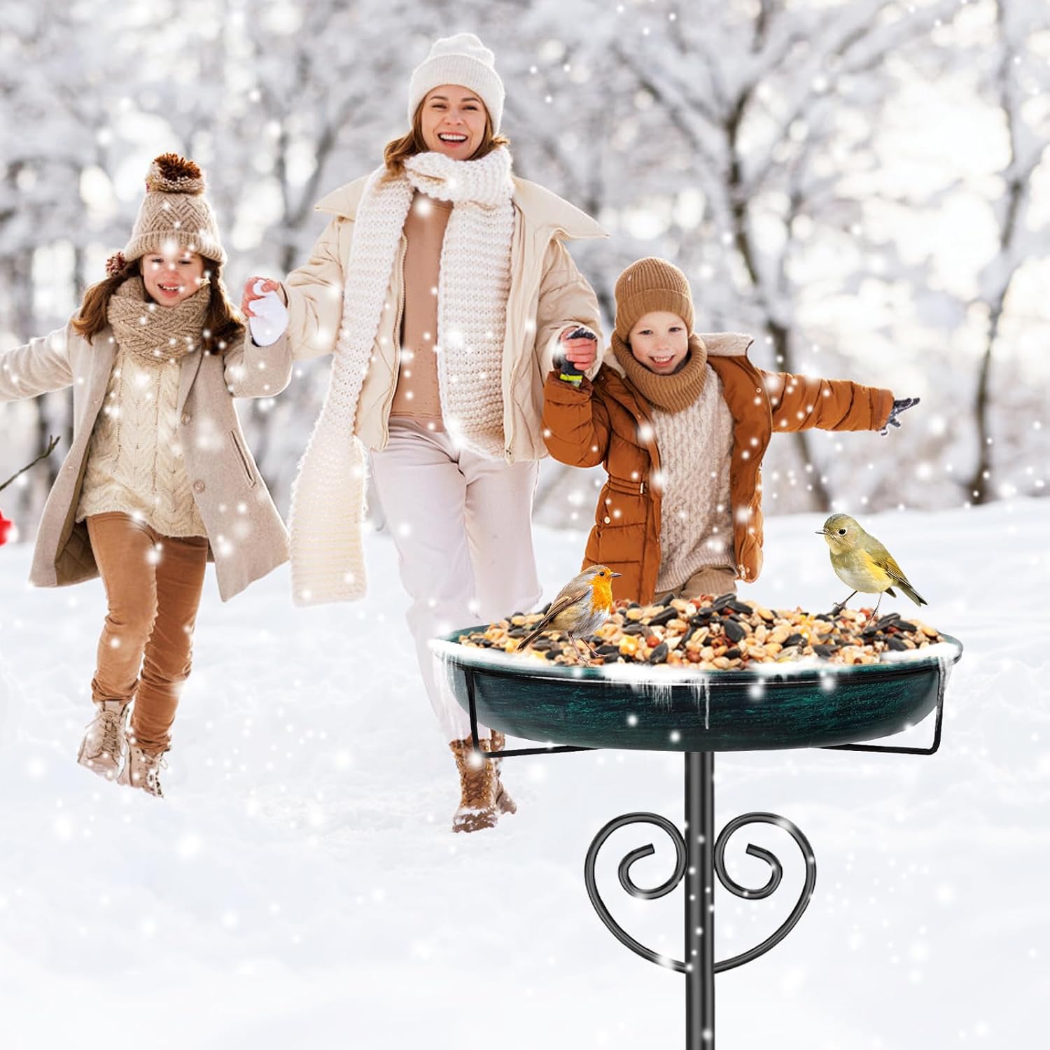 - Sturdy Base:The padded 5-prong base is made of sturdy metal that is not easily bent or broken while adding stability to the bird bath tub. Ensure that this bird bath is upright and firmly fixed in the soil of the garden