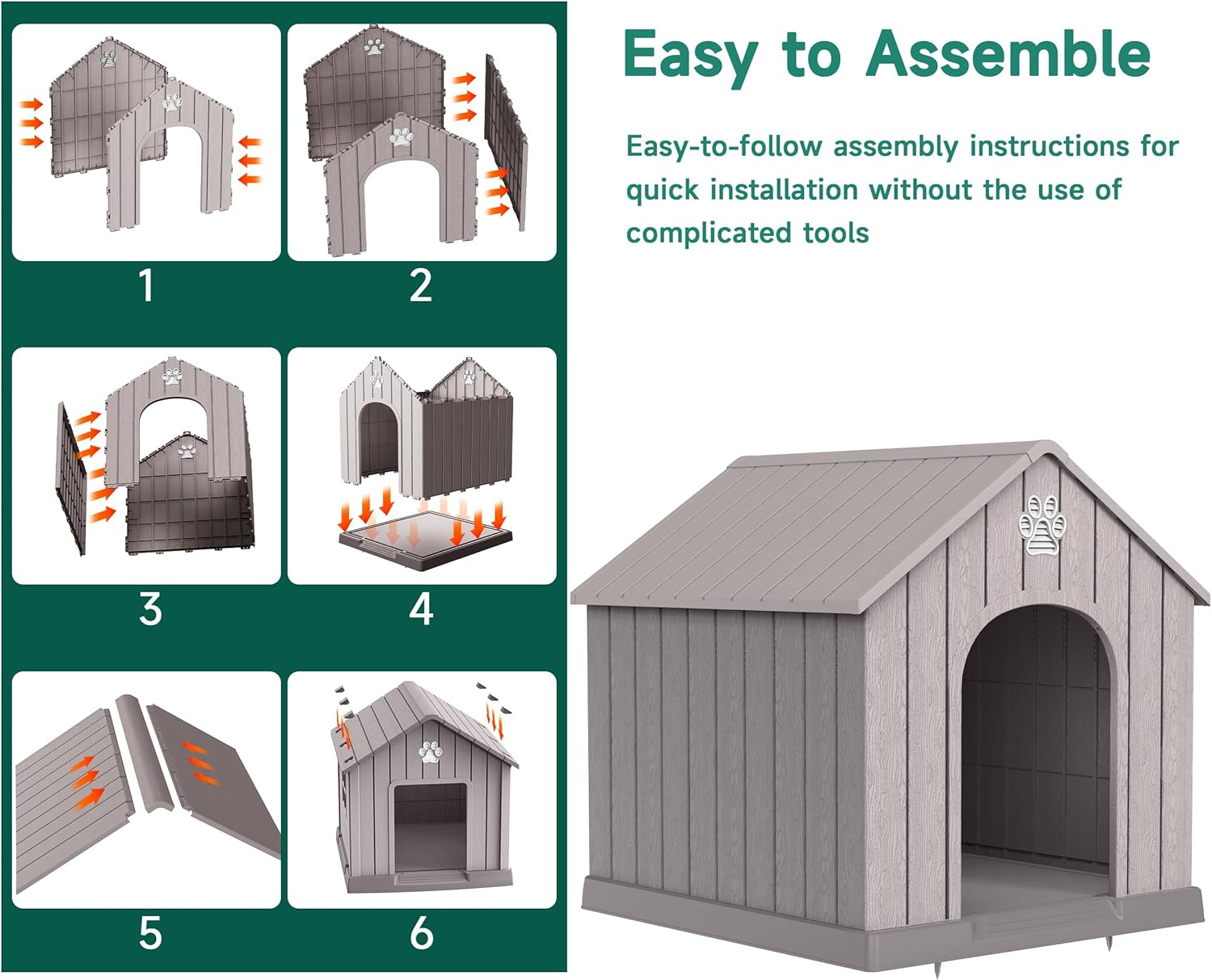 - Easy to Assemble: Our dog house design is straightforward and does not require specialized tools or technical knowledge, you can assemble the dog house in no time and let your dog enjoy his new home.