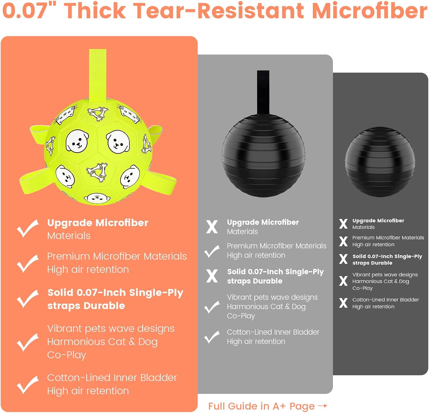 - 🧱Durable, Safe & Ready for Rough Play: Made with thick 0.07" premium Microfiber and reinforced stitching, this ball is built to handle daily fetch, tug, and chase games. CPC-certified and safe for pets. It’s not a chew toy—but it’s tough enough to take a beating. 𝐌𝐚𝐱 𝐀𝐢𝐫 = 𝐌𝐚𝐱 𝐃𝐮𝐫𝐚𝐛𝐢𝐥𝐢𝐭𝐲. 𝐊𝐞𝐞𝐩 𝐟𝐮𝐥𝐥𝐲 𝐢𝐧𝐟𝐥𝐚𝐭𝐞𝐝!