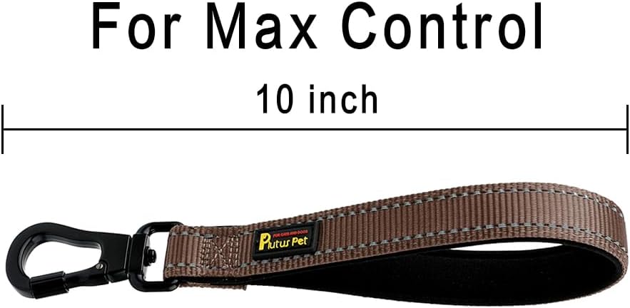PLUTUS PET Short Dog Leash, Reflective Nylon Padded Handle, Strong Traffic Leash with Carabiner Clip, Perfect for Large or Medium Dogs (10”,Chocolate)
