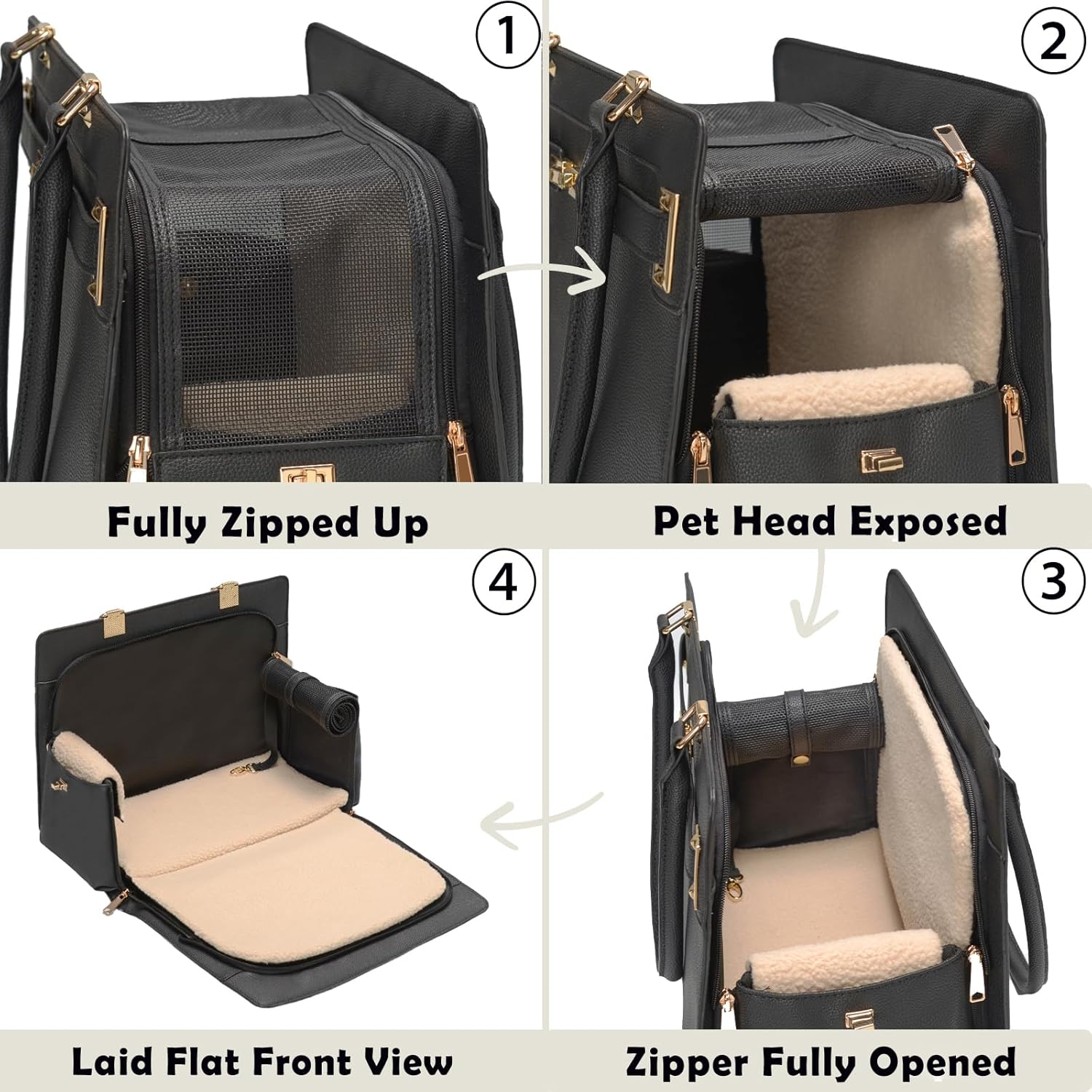 - Stylish & Functional Design Pet Carrier: Modern, chic look with sturdy and water-resistant vegan leather—perfect for fashionable pet owners who want style without sacrificing practicality. And an elastic safety leash is included inside to help prevent your pet from jumping or escaping