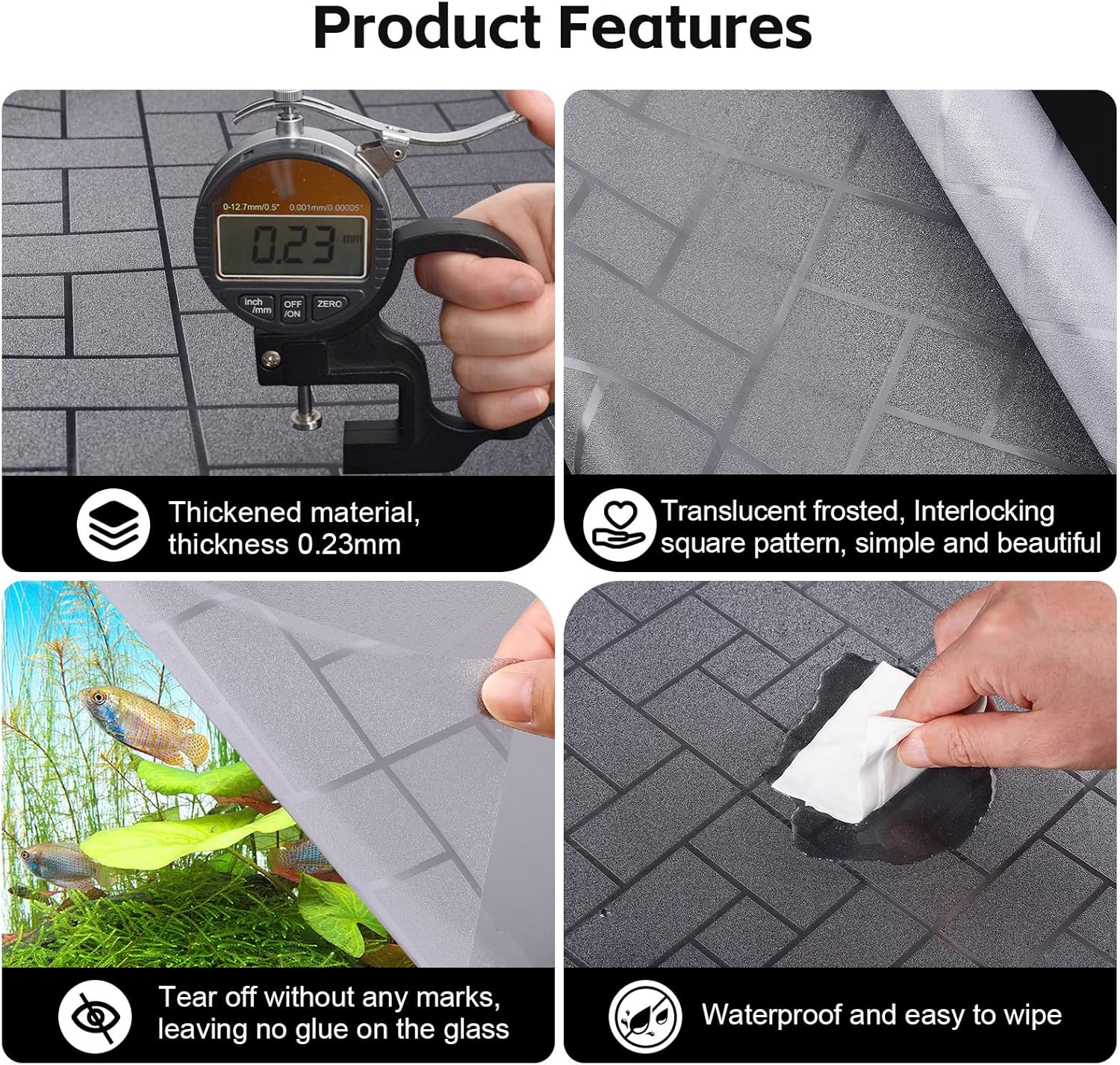 - High quality materials:This aquarium background wallpaper is crafted from thickened translucent PVC material with a 0.23mm thickness, featuring a frosted surface and elegant patterns for minimalist aesthetics. Its static cling design requires no adhesive, allowing effortless application to the back of fish tank. Removal leaves zero residue, ensuring lasting durability.