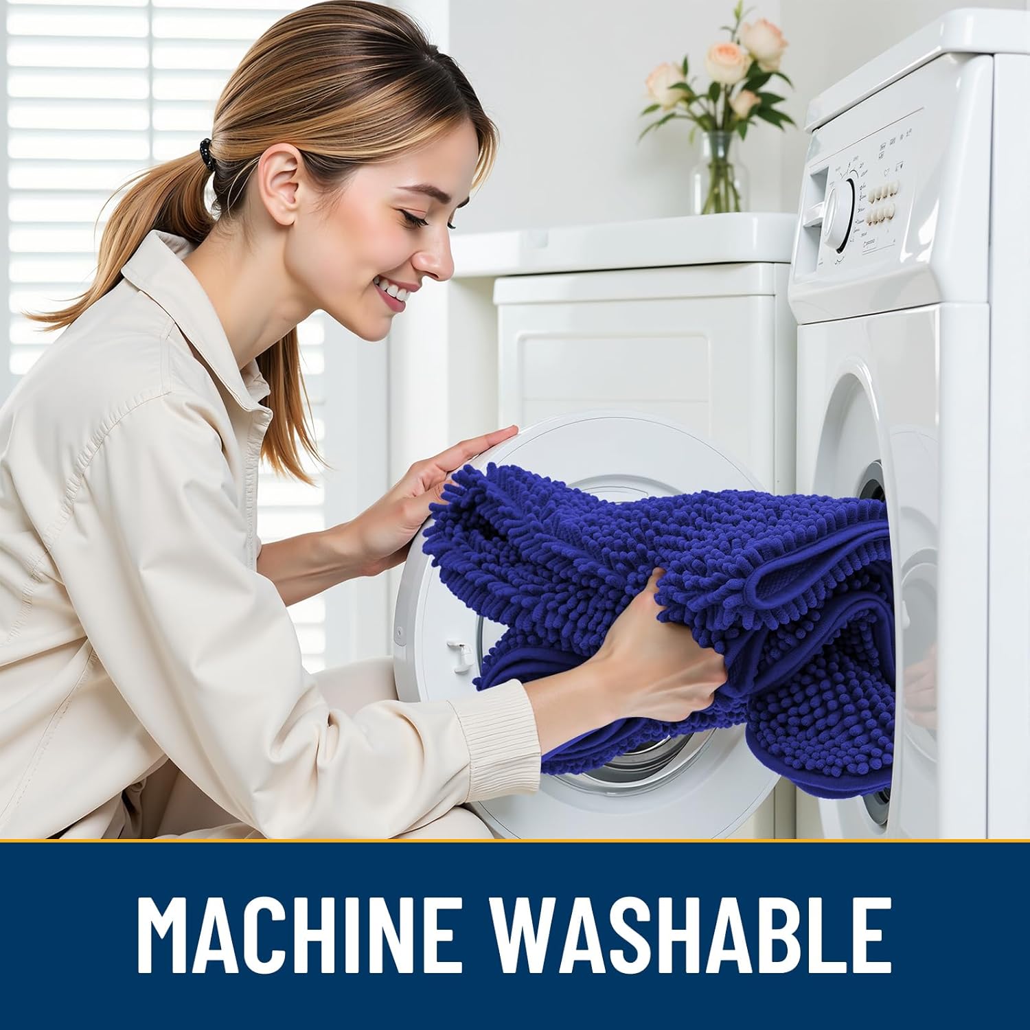 - [Absorbent and Dirt Trapper] High-density chenille dog mat, super absorbent and dirt-catching, whether wet after shower, muddy or moisture bring back by dogs, it can absorb well, so that you and your favorite pet can say goodbye to the wet and mud. It's an excellent choice for use as an entryway door mat, a welcome door mat or a dirt-trapping door mat.