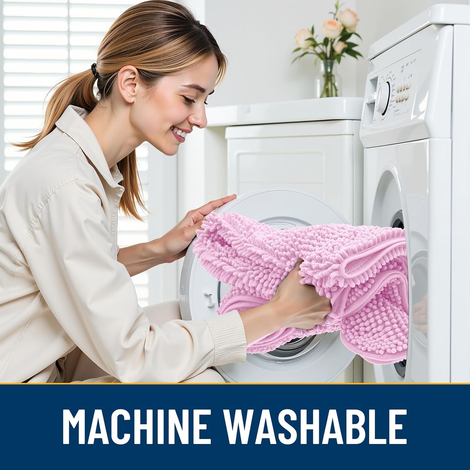 - [Absorbent and Dirt Trapper] High-density chenille dog mat, super absorbent and dirt-catching, whether wet after shower, muddy or moisture bring back by dogs, it can absorb well, so that you and your favorite pet can say goodbye to the wet and mud. It's an excellent choice for use as an entryway door mat, a welcome door mat or a dirt-trapping door mat.