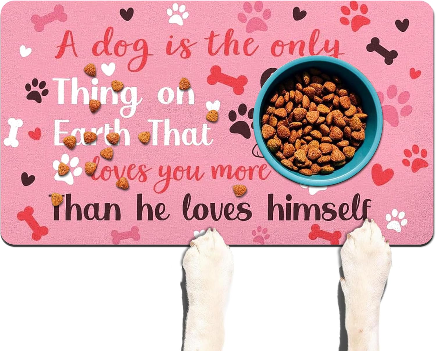 - Waterproof & Easy Clean Dog Food Mats for Floors Waterproof - Unlike regular mats, our heavy-duty dog food mat features a 100% waterproof layer that prevents liquids from seeping through the floor. Simply wipe clean your dog bowl mat after meals - no staining or odors! Works great as both a dog food mat and cat food mat.