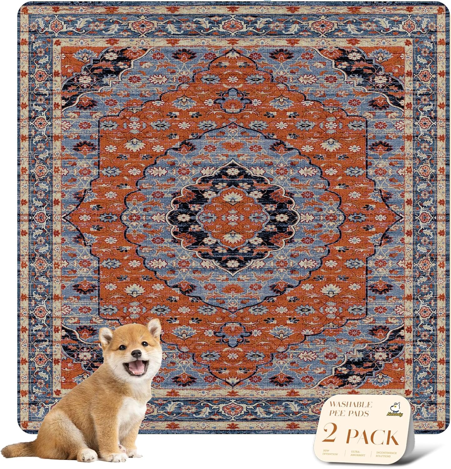 nunubaby Washable Pee Pads for Dogs, Stylish, Non-Slip and Leak-Proof Pee Pads. Reusable Potty Pads for Dogs for Crates and Floors.(Red/Floral, 48" x48")