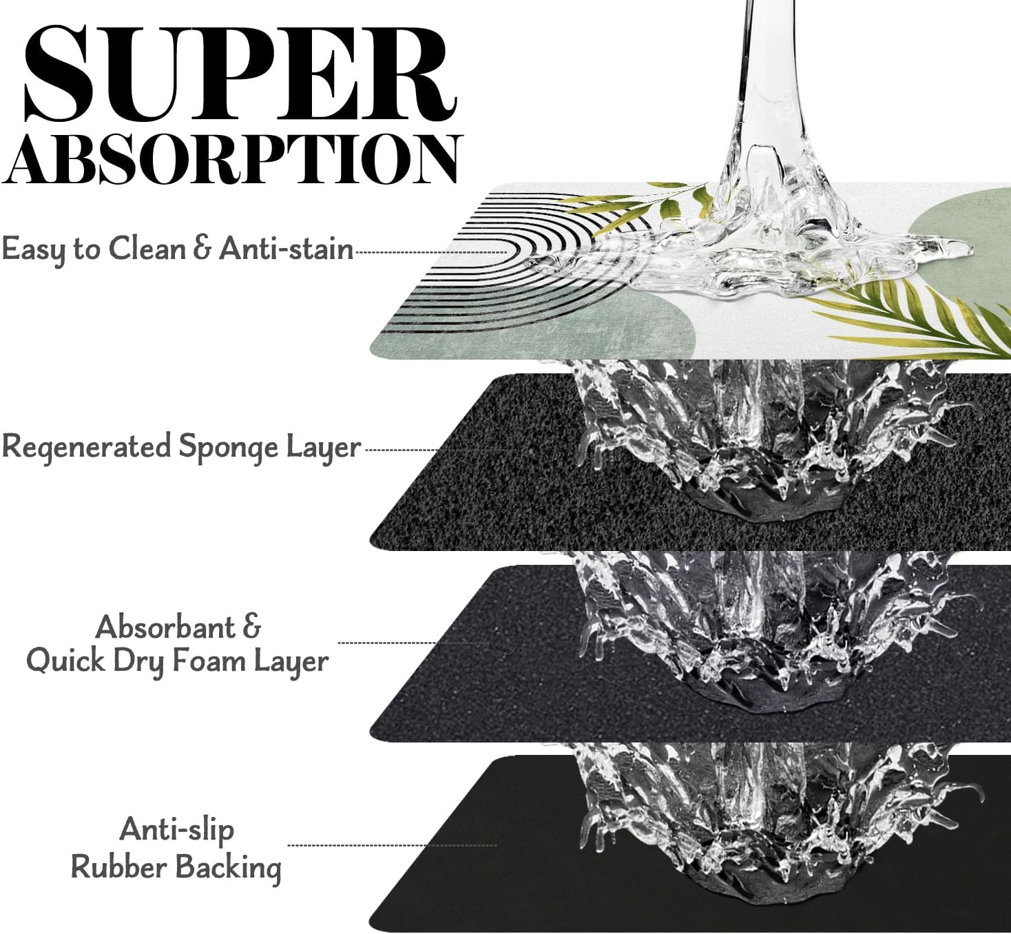 - Super Absorption: The dog mat for water bowl can absorb spilled water without leaving traces and dry quick, avoid wetting pet paws even for messy drinkers. And it does not attract pet hair like traditional silicone dog bowl mat.
