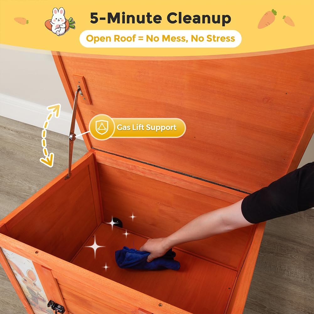 COZIWOW 24in Wooden Cat House Outdoor & Indoor Pet Shelter with Foldable Ramp - Weatherproof Rabbit Hutch with Unique Machine-Printed Art Designs for Cat, Rabbit, Guinea Pig (Orange)