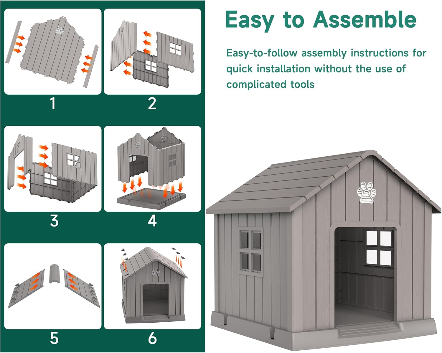 - Easy to Assemble: Our doghouse design is straightforward and does not require specialized tools or technical knowledge, you can assemble the dog house in no time and let your dog enjoy his new home.