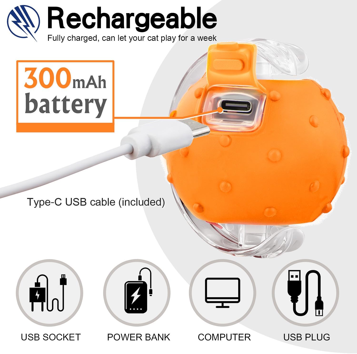 - Fast Charging & Eco-Friendly - USB Type-C rechargeable (cable included); 300mAh rechargeable battery and easily fully charged in 30 mins, no disposable batteries needed. Non-toxic silicone and ABS materials withstand scratches, convenient for cleaning.