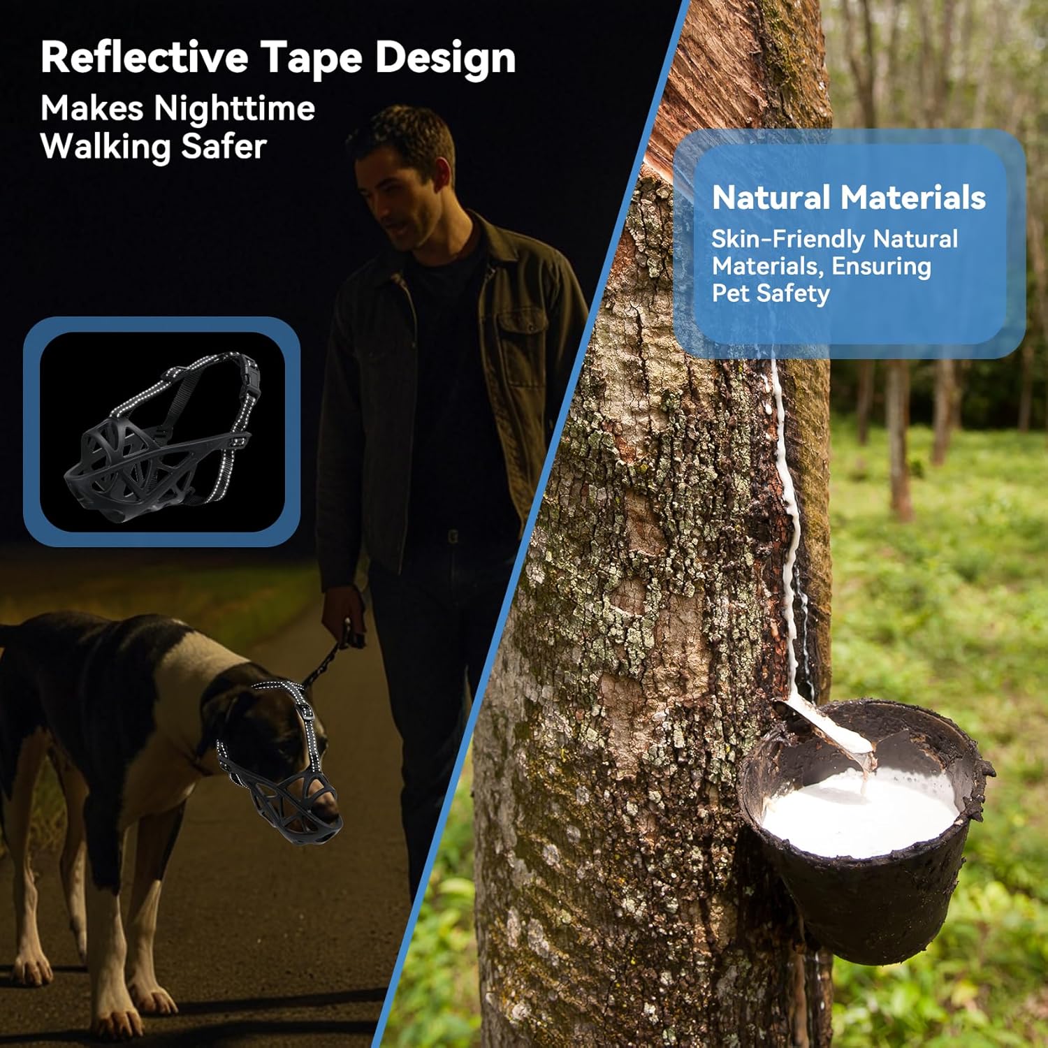 - Eco-Friendly Material for Safety and Durability: Our Dog Muzzle for Large Dogs is Crafted from Non-toxic, Environmentally Friendly TPR Silicone. This Lightweight yet Durable Material Is Odorless, Soft to the Touch, And Sturdy Enough to Resist Deformation, Ensuring Long-Lasting Use While Prioritizing Your Pet’s Safety
