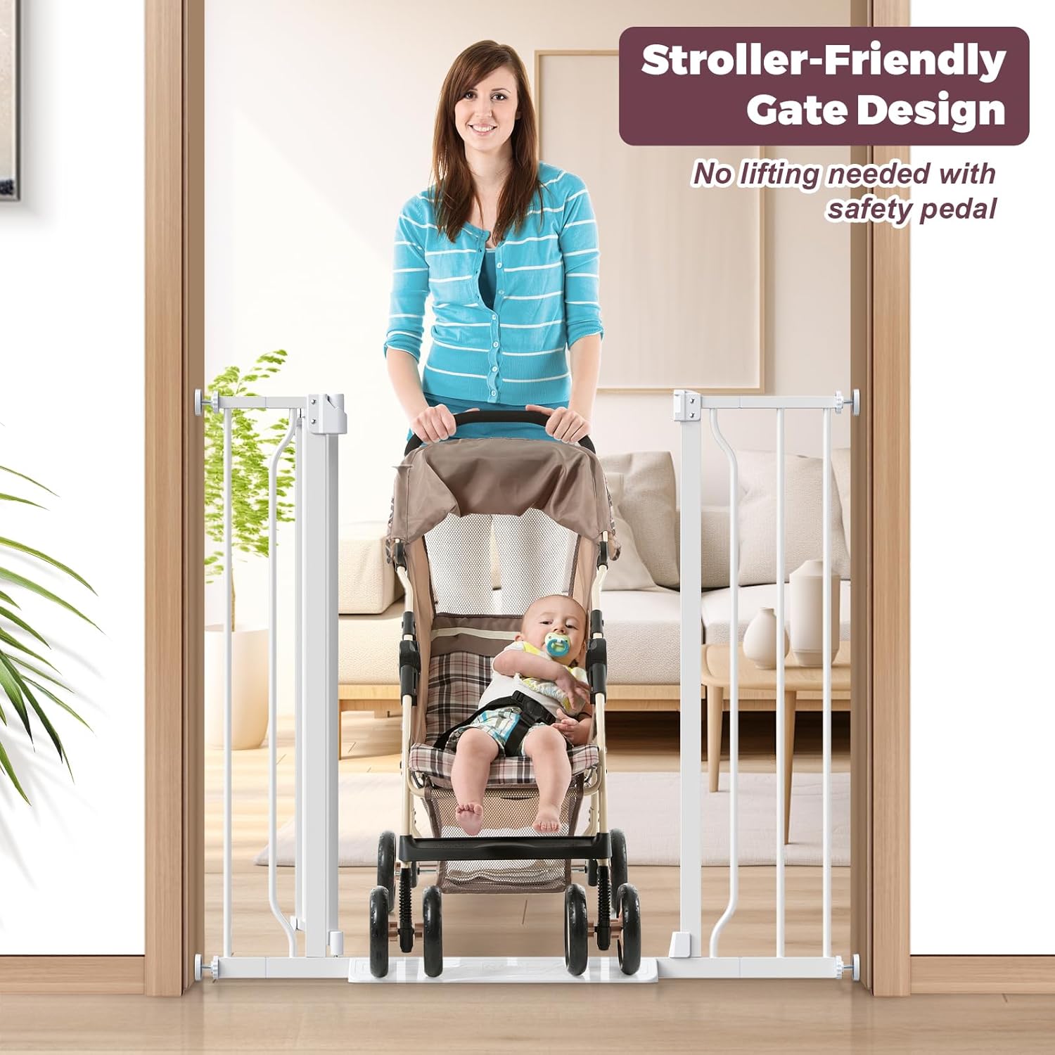 34" Extra Tall Baby Gate for Stairs, Auto Close Stroller Friendly Dog Gate Indoor for Doorways, Pressure Mounted 29"-40" W Baby Gate, Easy Walk Through Gate for Children & Pets, White