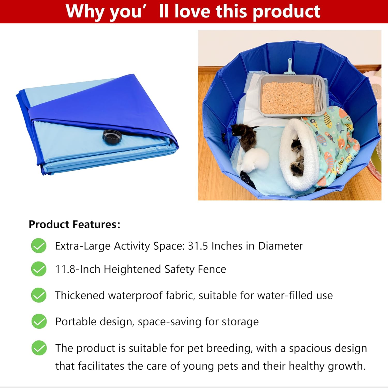 - Multifunctional design: The product can be used with water. It can serve as a small swimming pool for pets and also as a sink for bathing