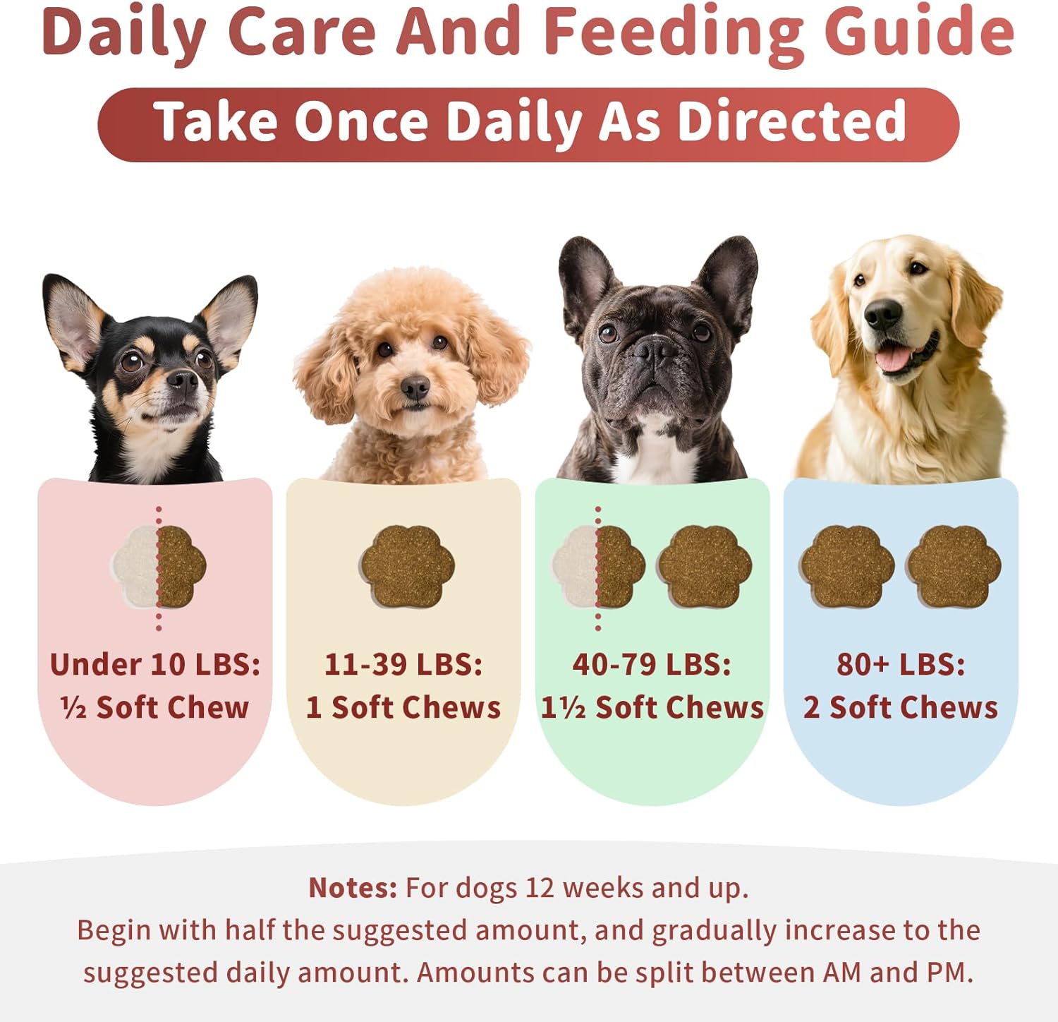 - Tasty & Safe & Natural Chews: Your dog will love our immune and allergy soft chews. Delicious, natural-flavored make wellness a joyful part of your dog's day! And they're a safe, worry-free choice for your dog's long-term health and vitality