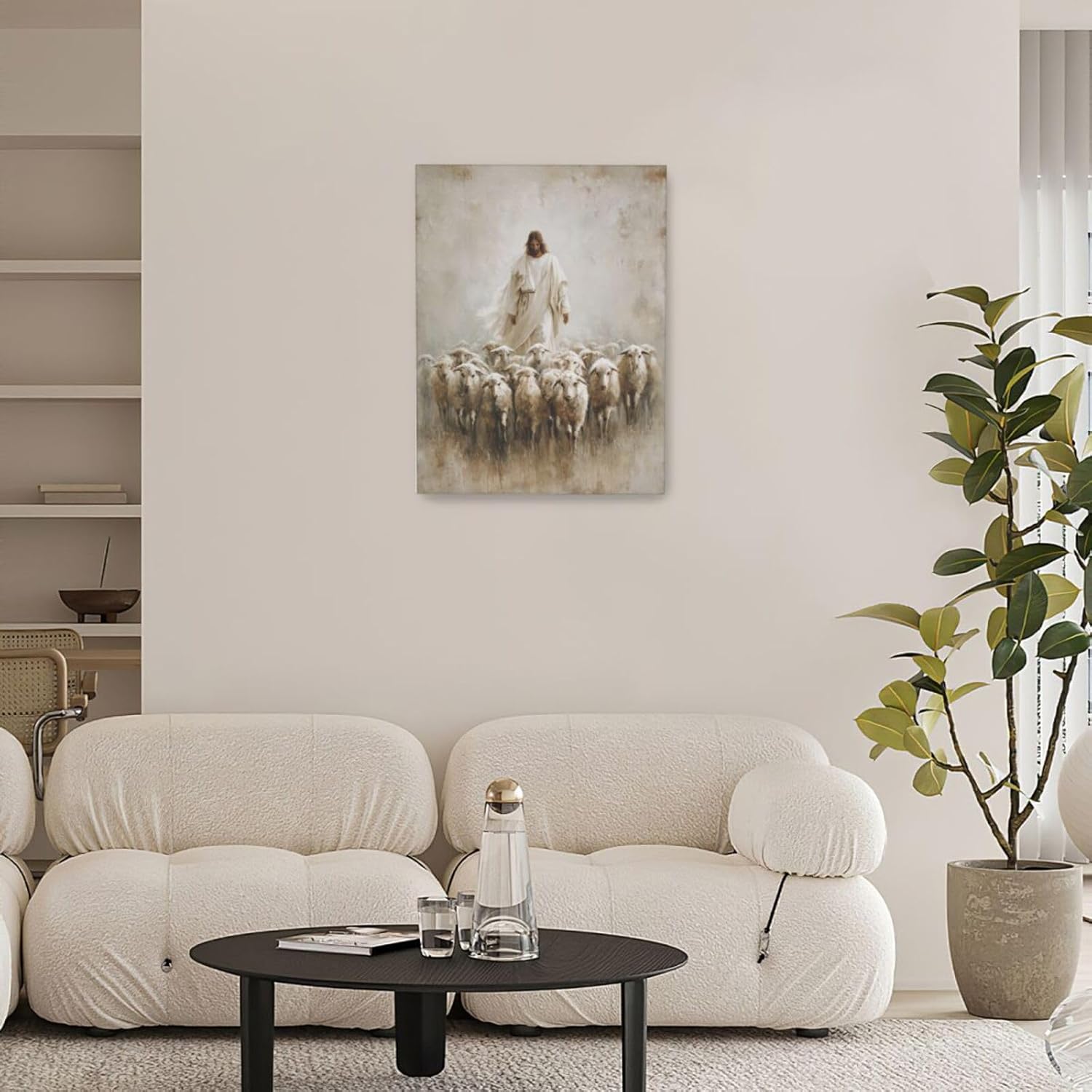 Jesus and Lamb Wall Art Christian Jesus Lamb Canvas Wall Decor Christ Religious Pictures painting Print Framed Artwork Decorations Gifts for Living Room Bedroom Prayer Room Church 12"x16"