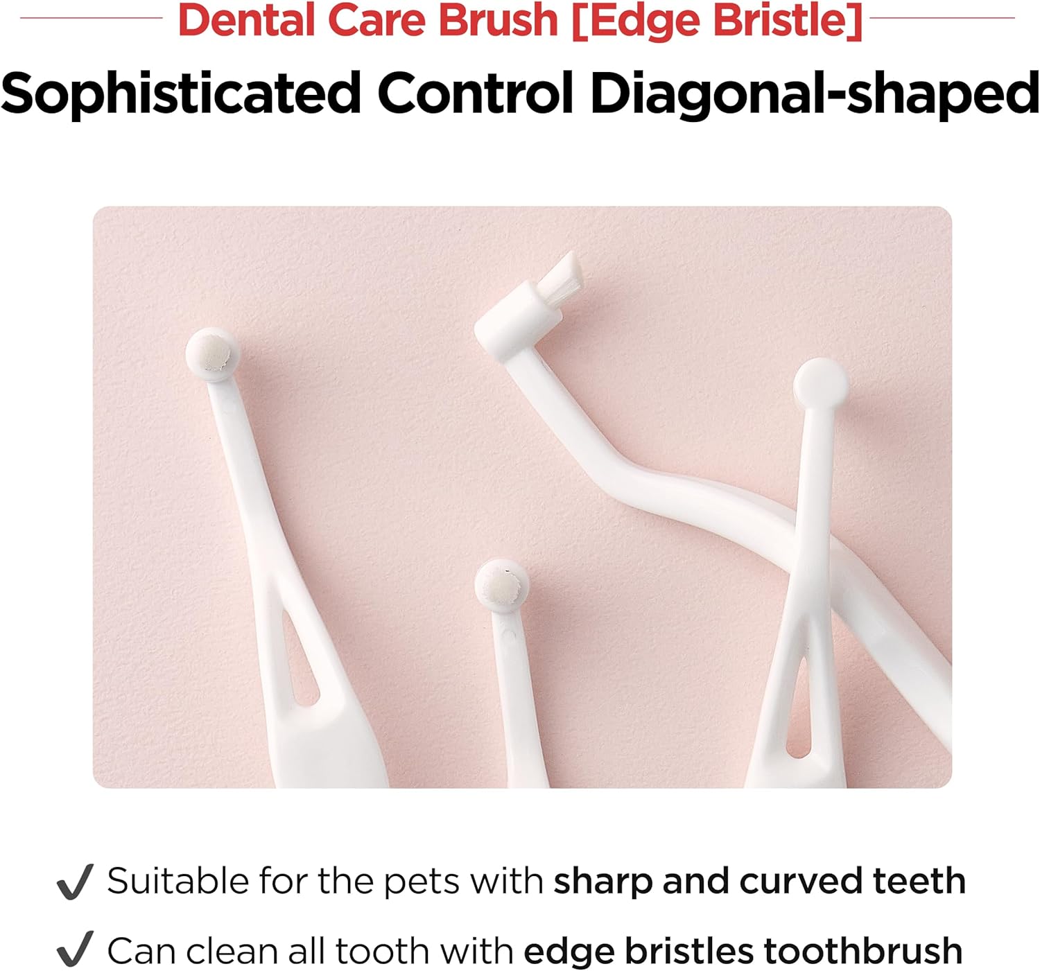 - Sophisticated Control - Our ergonomic fit horizontal toothbrush is suitable for pet’s sharp & curved teeth. The diagonal shape of the bristle minimizes possible damage to the gum.