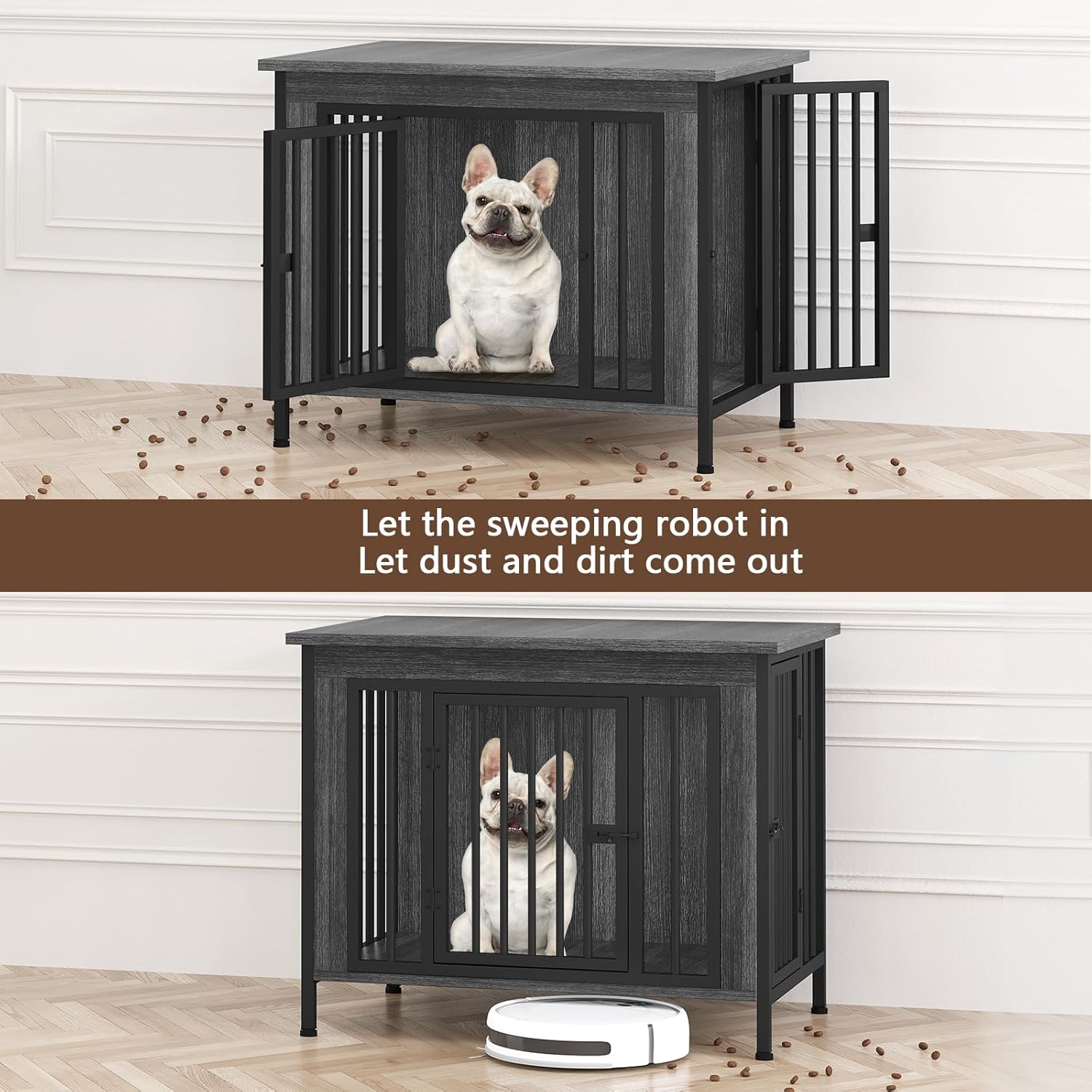 - 【Cleaning by Sweeping Robot】: With 3.94 inch raised feet, the dog crate furniture allows sweeping robots to enter and clean. Easily maintain cleanliness and tidiness, no need to struggle with moving dog cage during general cleaning. Keeping the bottom of the dog cage dry and clean can make dogs away from dust and moisture, preventing health hazards.