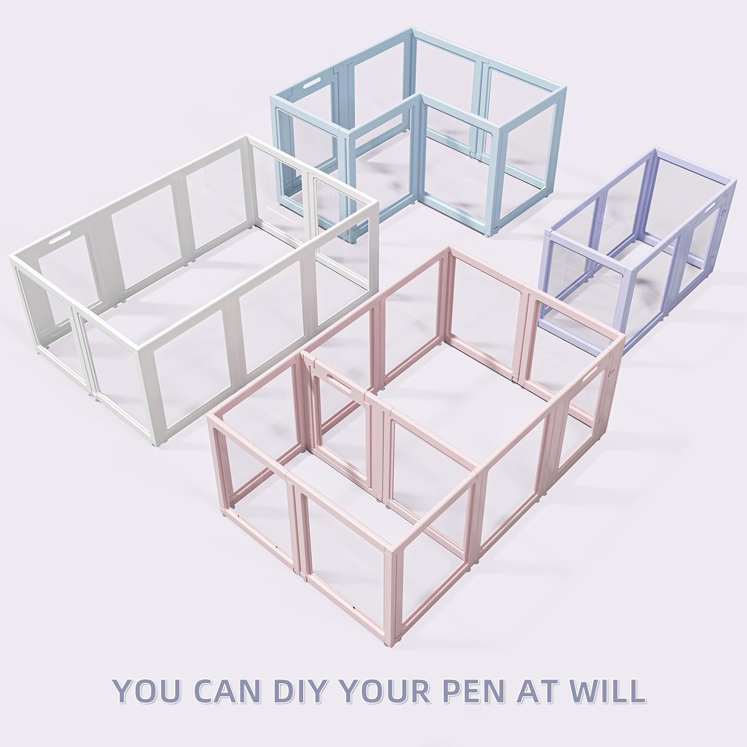 - EASY TO ASSEMBLE & DISASSEMBLE:Our dog fences indoor can be combined into square or rectangular shapes as you idea. Modular assembly design eliminates various of screws and bolts, so no tools are needed, just gentle tap by hand, you can complete the assembly/disassembly in a few minutes, so it's also PORTABLE, you can bring our fence with you when camping or short trips, let your pet to the beauty of life together!