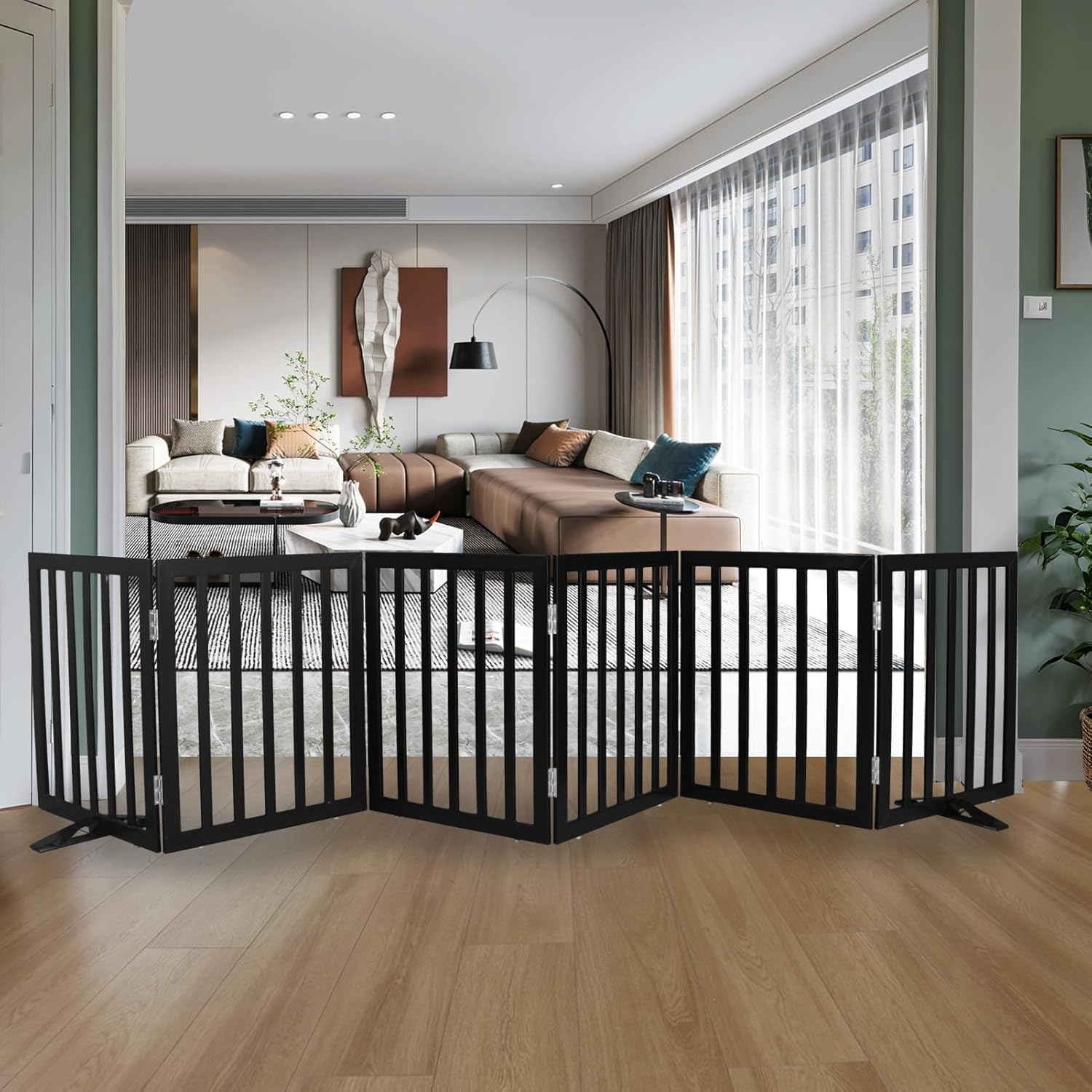 - 【6 PANELS】 Dog gates is built with 6 separate panels, secured together with sturdy stainless steel hinges.dog gates is a dog fence, room divider, and pet pen all in one.