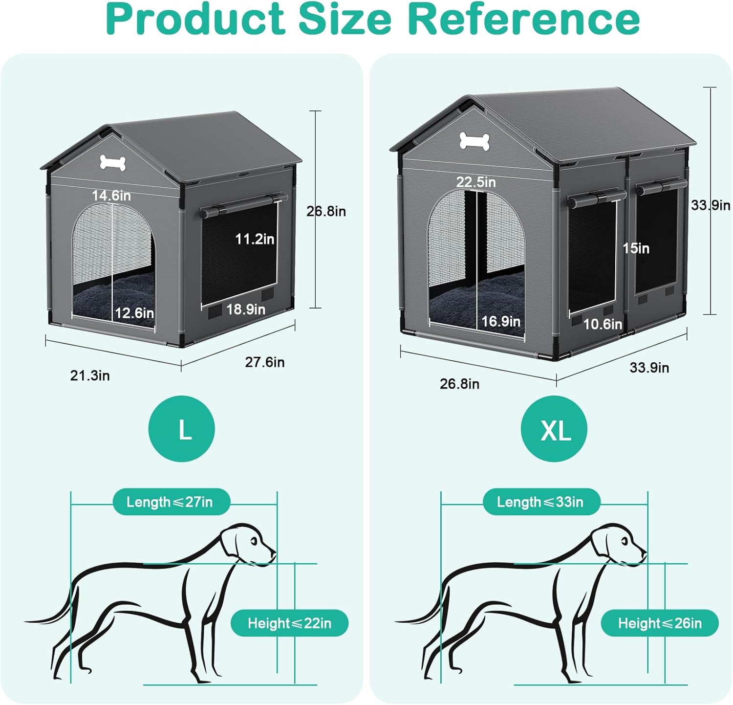 - Stable PVC Frame & 600D Thicken Oxford Cloth: The frame of our pet house is supported by plastic pipes. Compared to traditional soft dog houses made of plush fabric, our pet house will not easily be flattened by pets. In addition, our materials use outdoor windproof, UV-resistant, and rainproof Oxford cloth, ensuring the doghouse's high thermal insulation