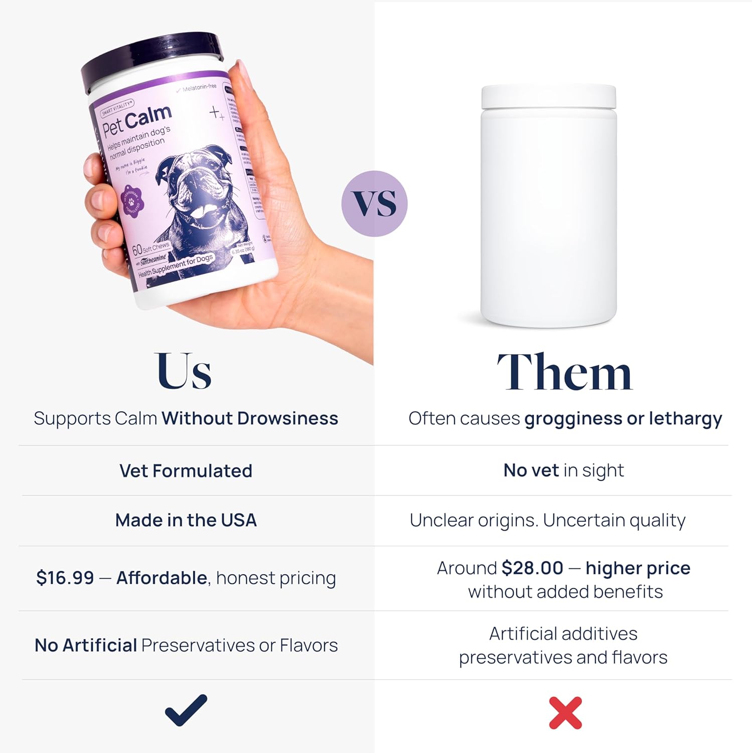 - VET-FORMULATED, EASY TO GIVE - Soft dog calming chew designed for daily or as-needed use, no artificial flavors or preservatives. Tasty and trusted by pet parents. High-quality calming chews for dogs, puppy calming chews, calming treats for dogs.