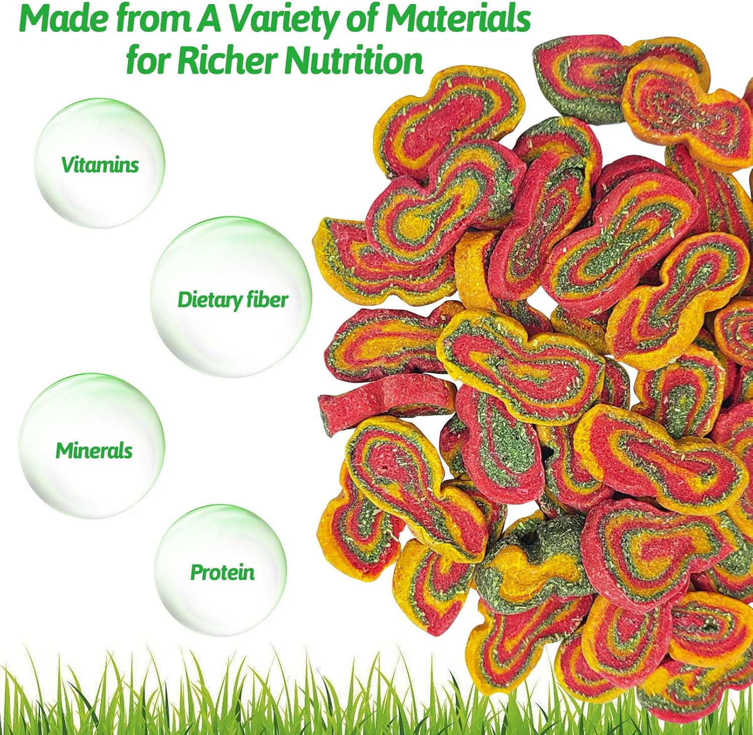 - Natural Green Materials: Rabbit chews are made from natural plant powders, including forage, sugar beet, pumpkin, and carrot, which are baked at high temperatures to preserve their natural flavor, making them safe for small animals to eat