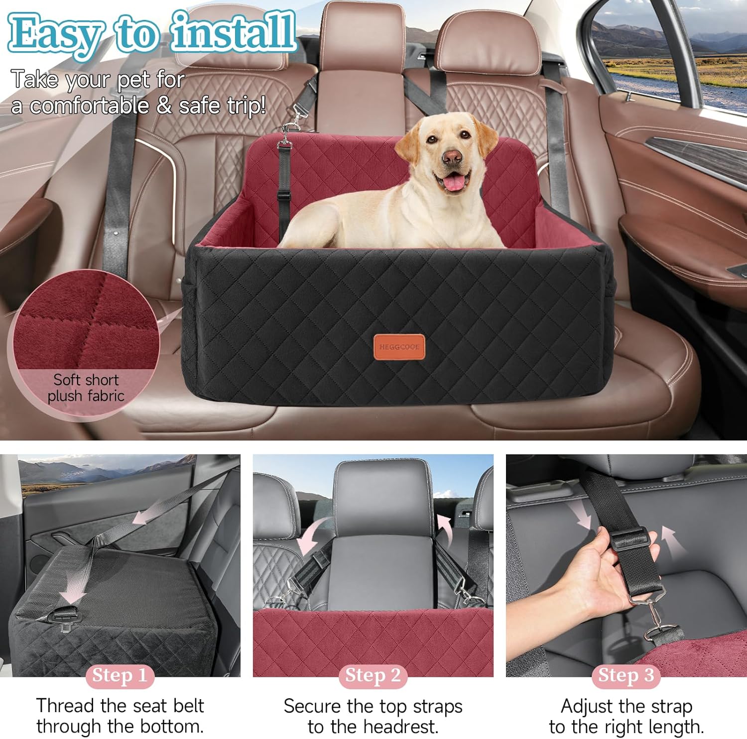 - Comfort & Safety First: Our dog car seat features high-density egg-crate foam filling, it provides perfect pressure relief and joint support for your dog. The outer layer is made of short plush fabric that is comfortable to touch. In addition, it comes with two safety ropes that can be tied to the dog's harness to protect your dog