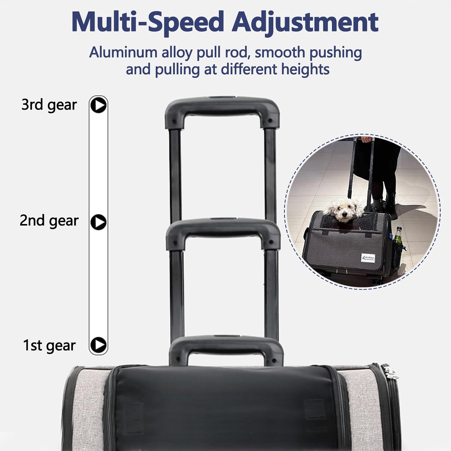 - Two ways to carry: Our pet bag allows you to easily unload the burden on your shoulders! This pet bag is equipped with 4 high-quality rollers that can rotate 360°, which can bring a smooth and comfortable experience even on rugged roads or grass. The top handle is convenient for hand-carrying, and two ways of carrying make travel more convenient.