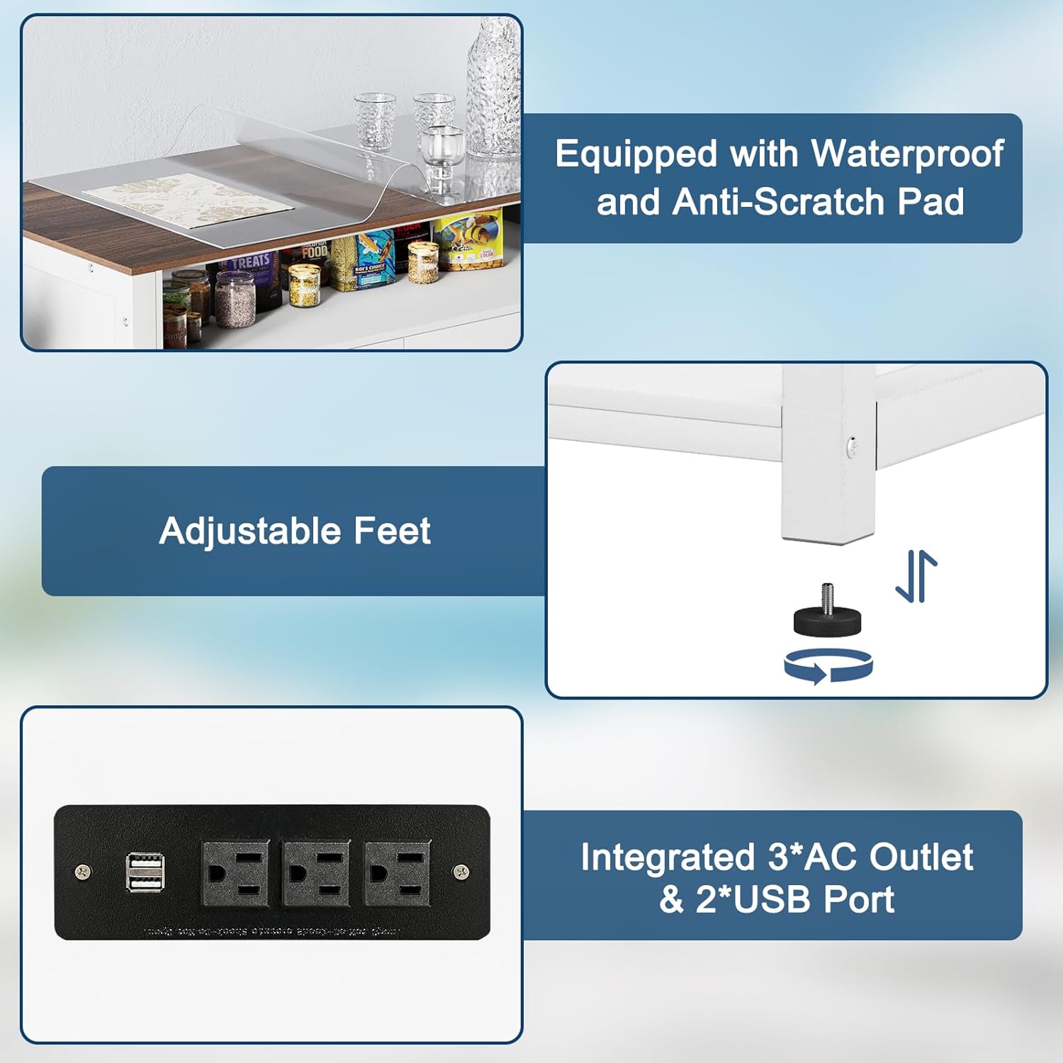 - Power Outlet – Never worry about tangled cords again! This advanced aquarium stand comes equipped with a built-in power strip featuring 3 AC outlets and 2 USB ports, making it effortless to power heaters, filters, pumps, and LED lights—all while keeping wires neatly organized.
