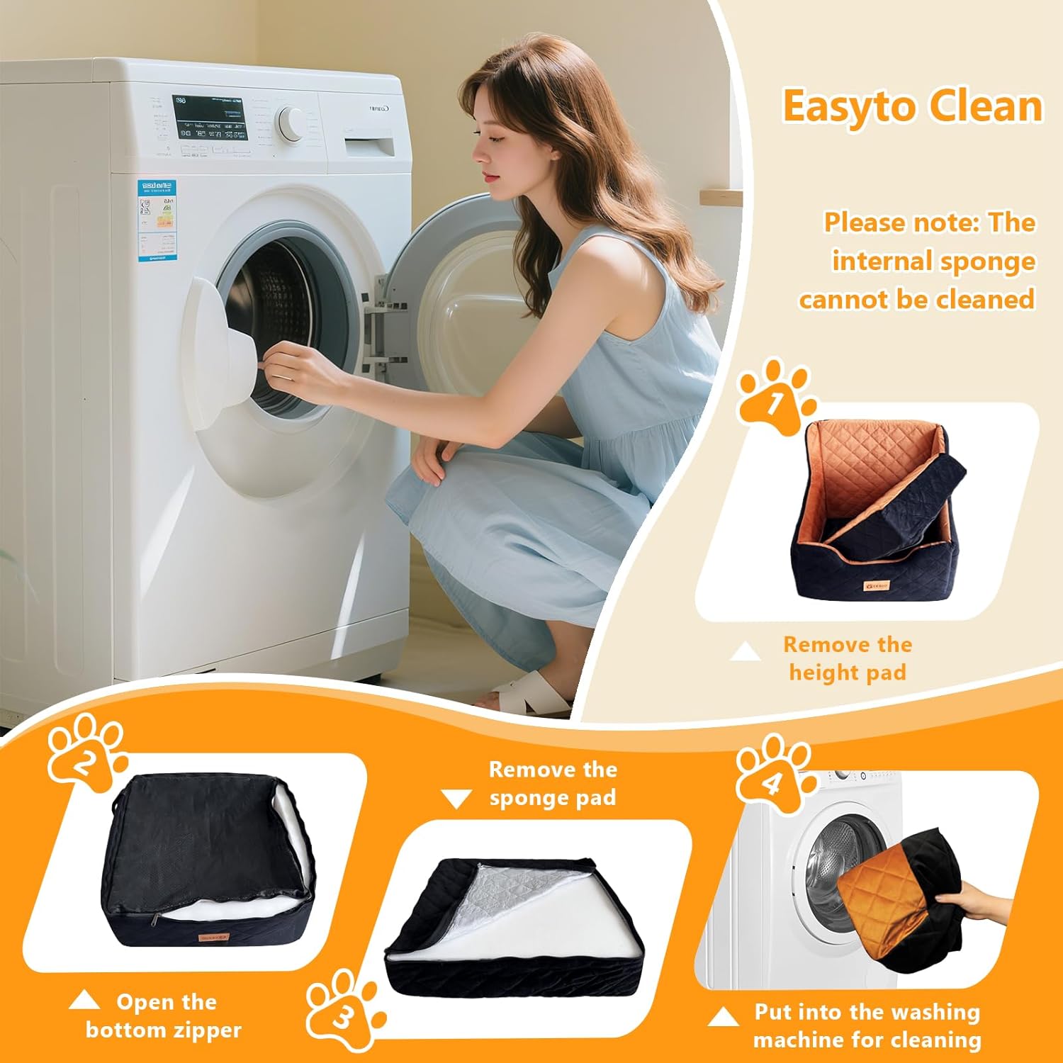 - Easy To Clean and Maintain- This pet car seat features a fully detachable design, with a sliding zipper inside to remove the memory foam and machine wash the seat cover. Very easy to clean. The bottom of the booster seat is waterproof, which can prevent accidents (please note that the internal foam cannot be cleaned).
