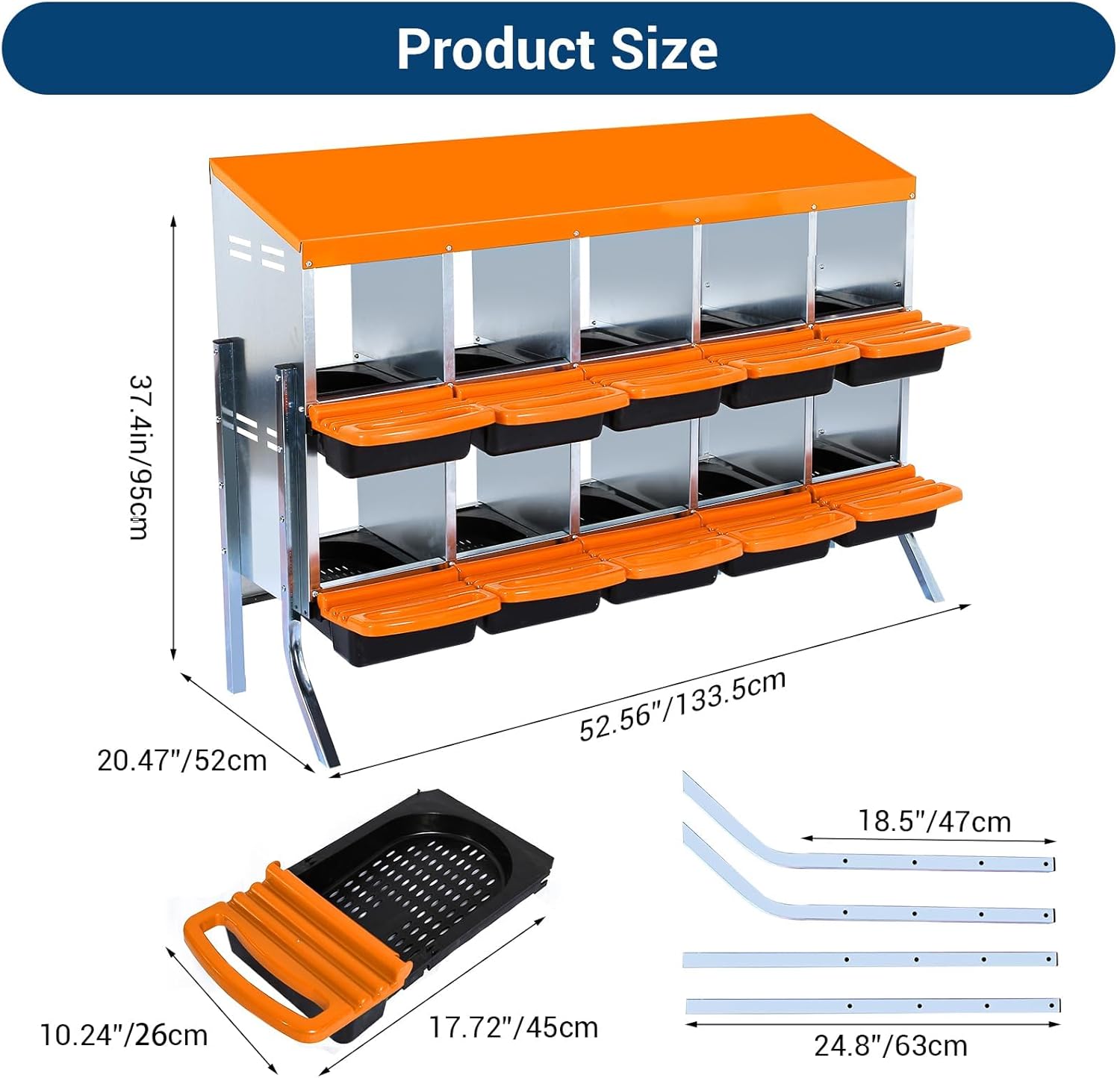 Chicken Nesting Box, 10 Hole 2 Layer Hen Nest Boxes with Legs, Roll Away Eggs Laying Boxes,Cleanable Pull Out Hen Roosting Boxes