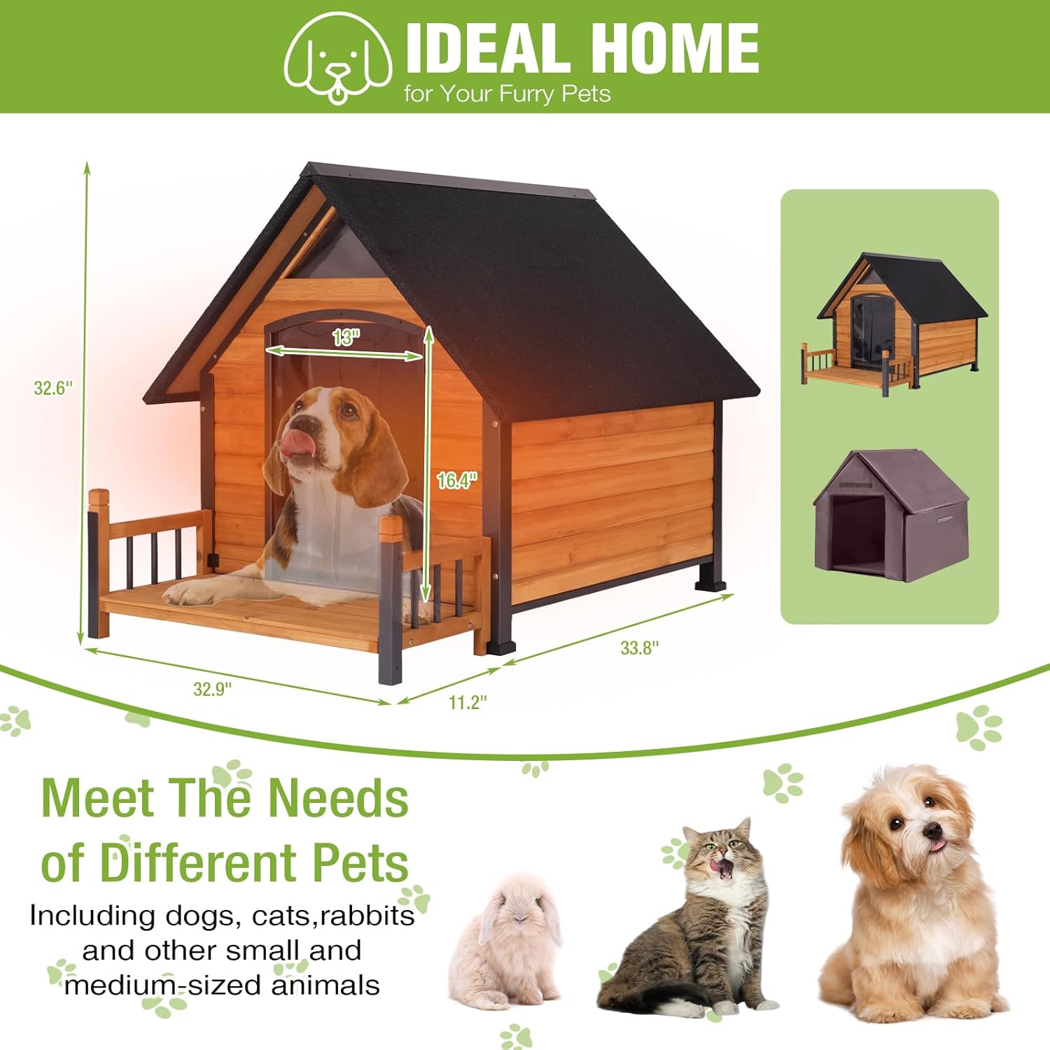 - SPACIOUS SPACE FOR MULTI BREEDS:Measuring 45in(L)×32.9in(W)×32.6in(H) with a roomy entrance of 16.4in(H)×14in(W), our Dog House is perfectly sized for small and medium dogs. Suitable for both indoor and outdoor use, it's the perfect Puppy Shelter for any family pet