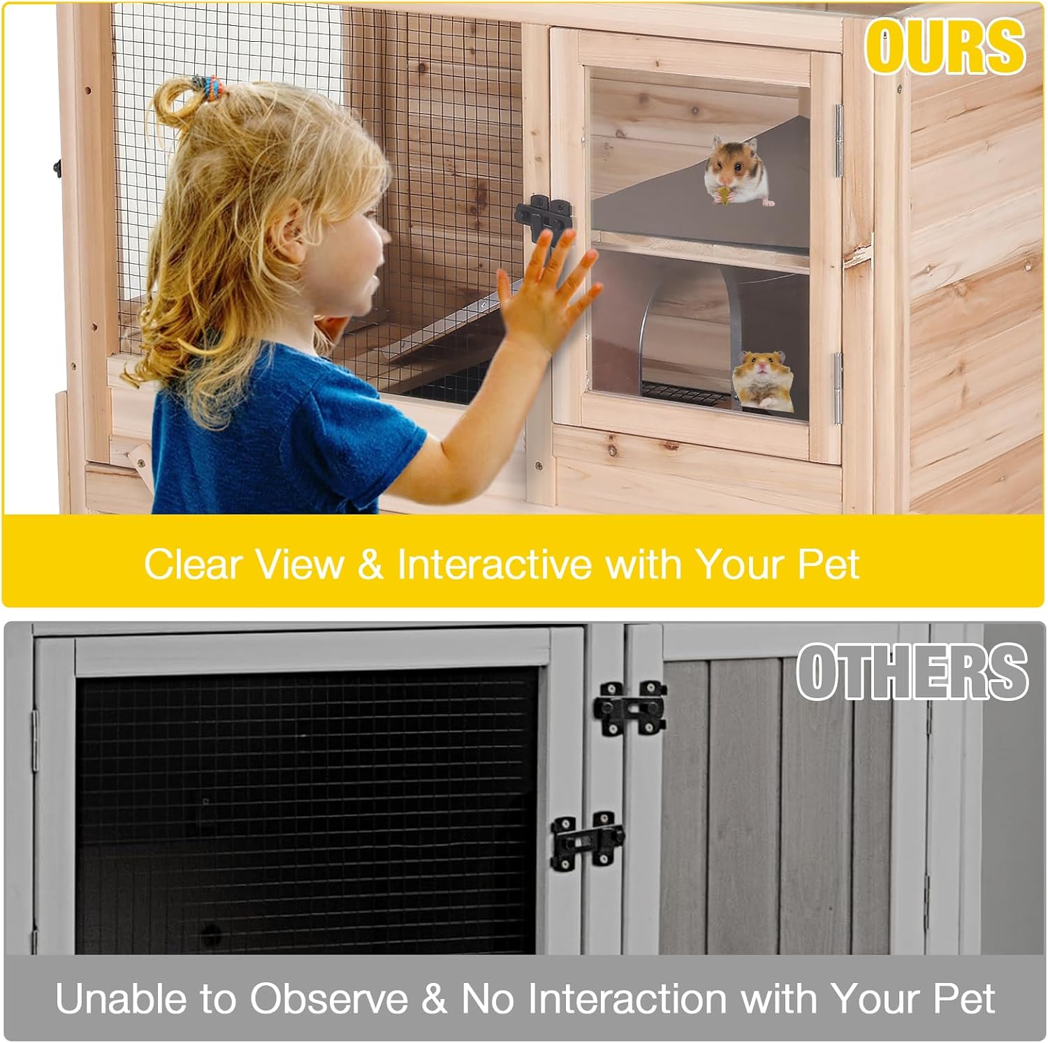 - Clear Viewing and Interaction:The cage features clear doors and windows that allow for easy observation and interaction with your pets. This design enables you to monitor your pets' activities and engage with them, fostering a stronger bond