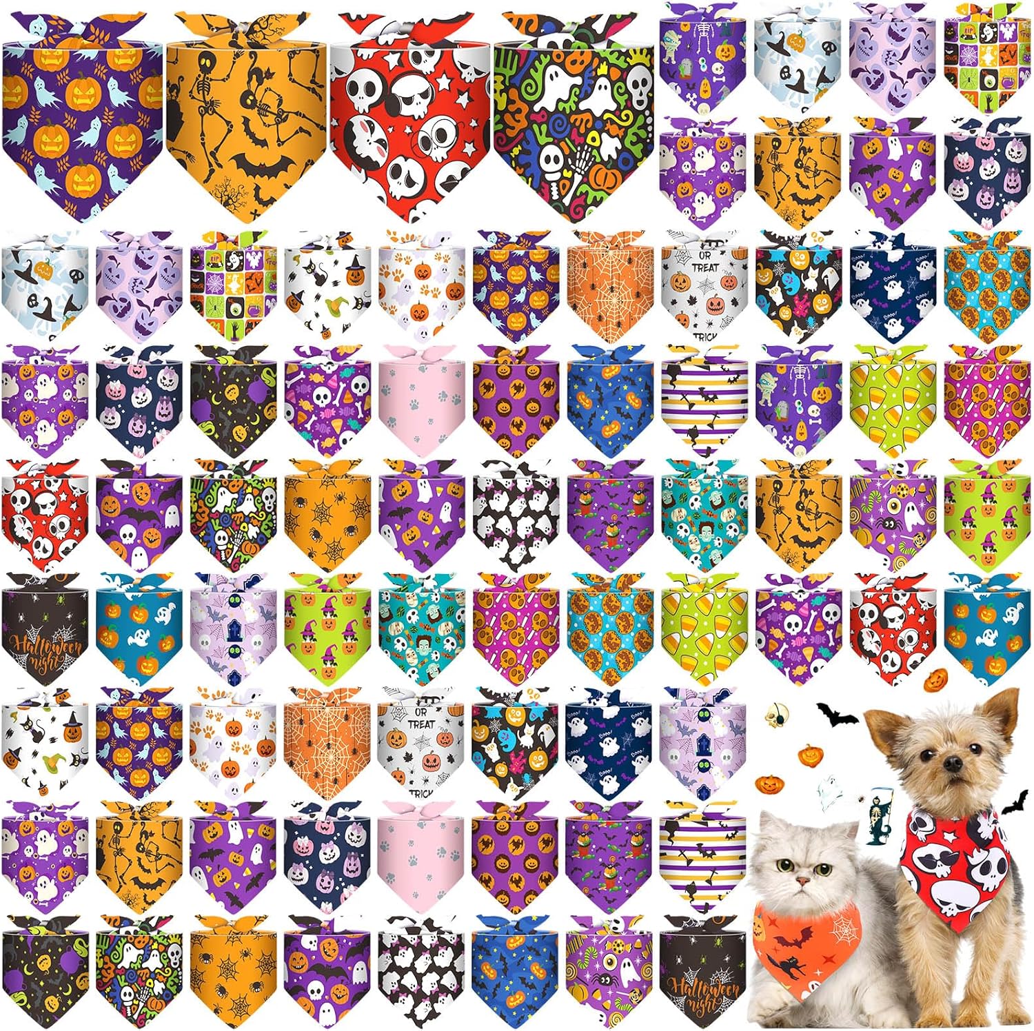 - Ample Quantity: with 72 pieces of Halloween theme dog bandanas in one package, you can have your dog looking stylish, the holiday pet headscarves come in different patterns, bright colors, sufficient quantities, diverse styles, can meet your pet's different style wearing needs and daily replacement