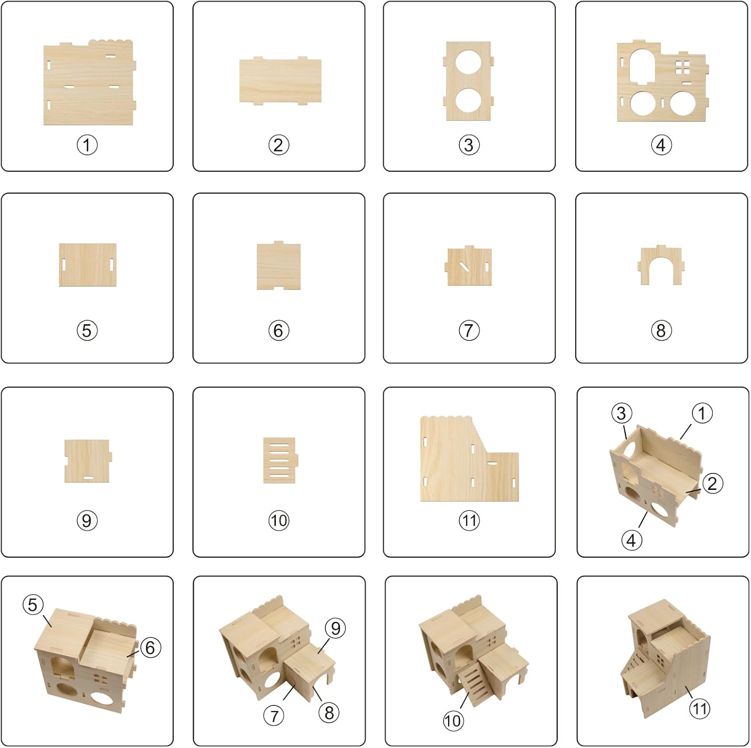 - Natural and safe material - Constructed from solid poplar wood with sanded-smooth edges, bonded by plant-based adhesive technology. The natural wood composite contains zero formaldehyde or harmful chemicals. A pure natural, non-toxic waterproof coating is applied externally, ensuring moisture resistance while 100% safe for hamster contact.