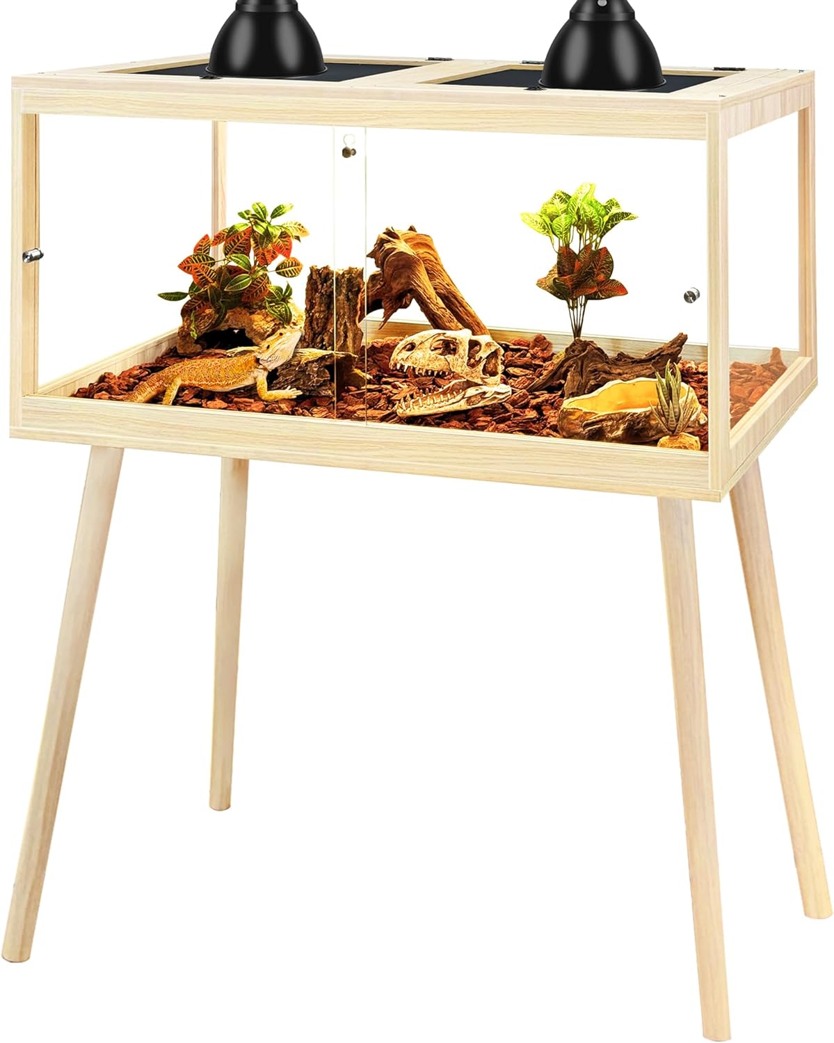 - 【Spacious Elevated Design】Available in 24", 30", 36", and 48" lengths with a raised 4-legs design(please refer to pic2 for exact size), this habitat offers ample room for reptiles to explore, bask, and hide. Refer to the second image for detailed sizing to select the best fit for your pet. The bottom includes an acrylic liner that makes cleaning easier while keeping the interior tidy.