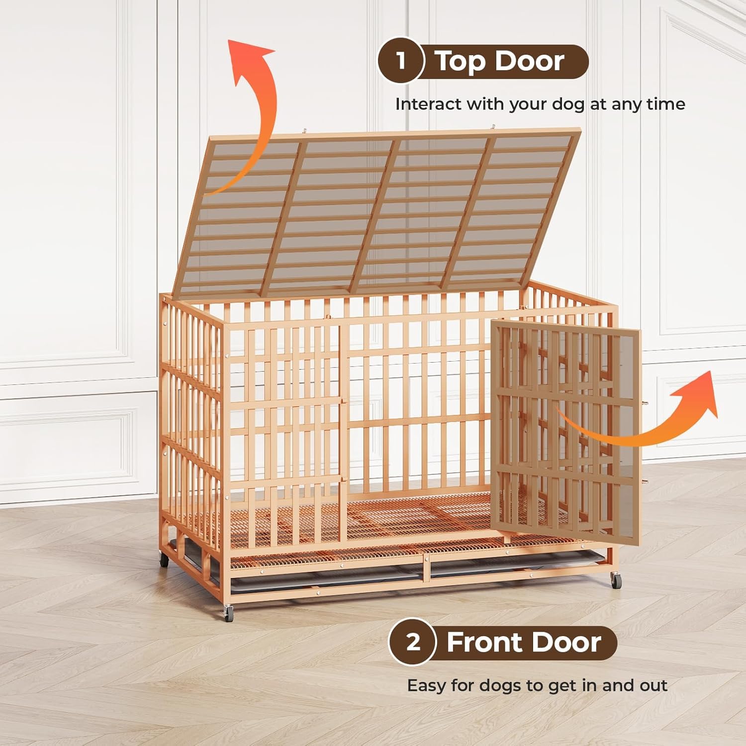 - Durable Orange Dog Crate:This upgraded 48-inch dog cage with a orange coating is built to be truly indestructible. Made from corrosion-resistant, reinforced steel tubes with a 0.79-inch diameter, it features a multi-layered, non-toxic protective coating to ensure your dog’s health. Ideal for most medium and large dogs.