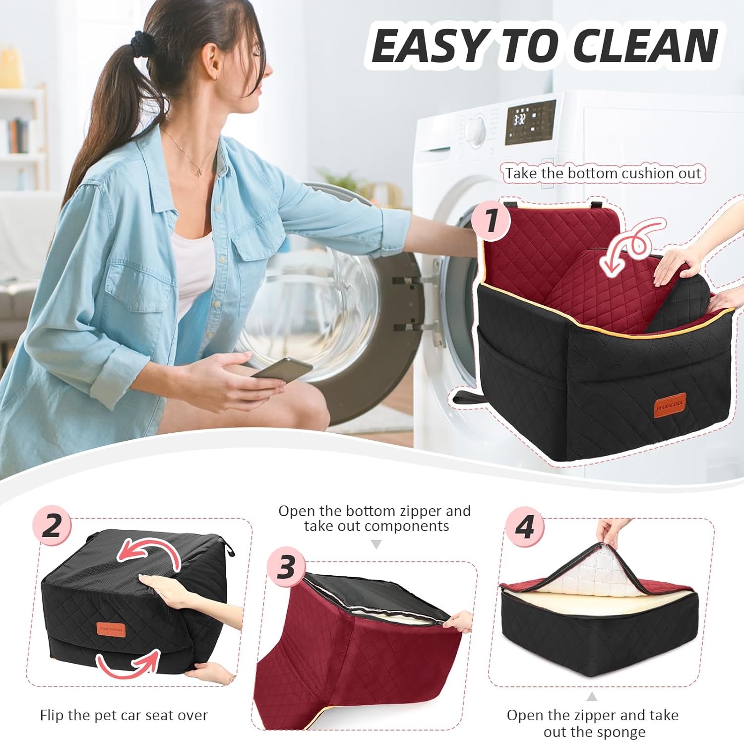 Dog Car Seat for Small Medium Dogs, Memory Foam Puppy Dog Booster Seat with Thick Cushion for Dogs Under 35lbs, Detachable Washable Pet Car Seat Travel Bed with Storage Pockets,2 Safety Belts