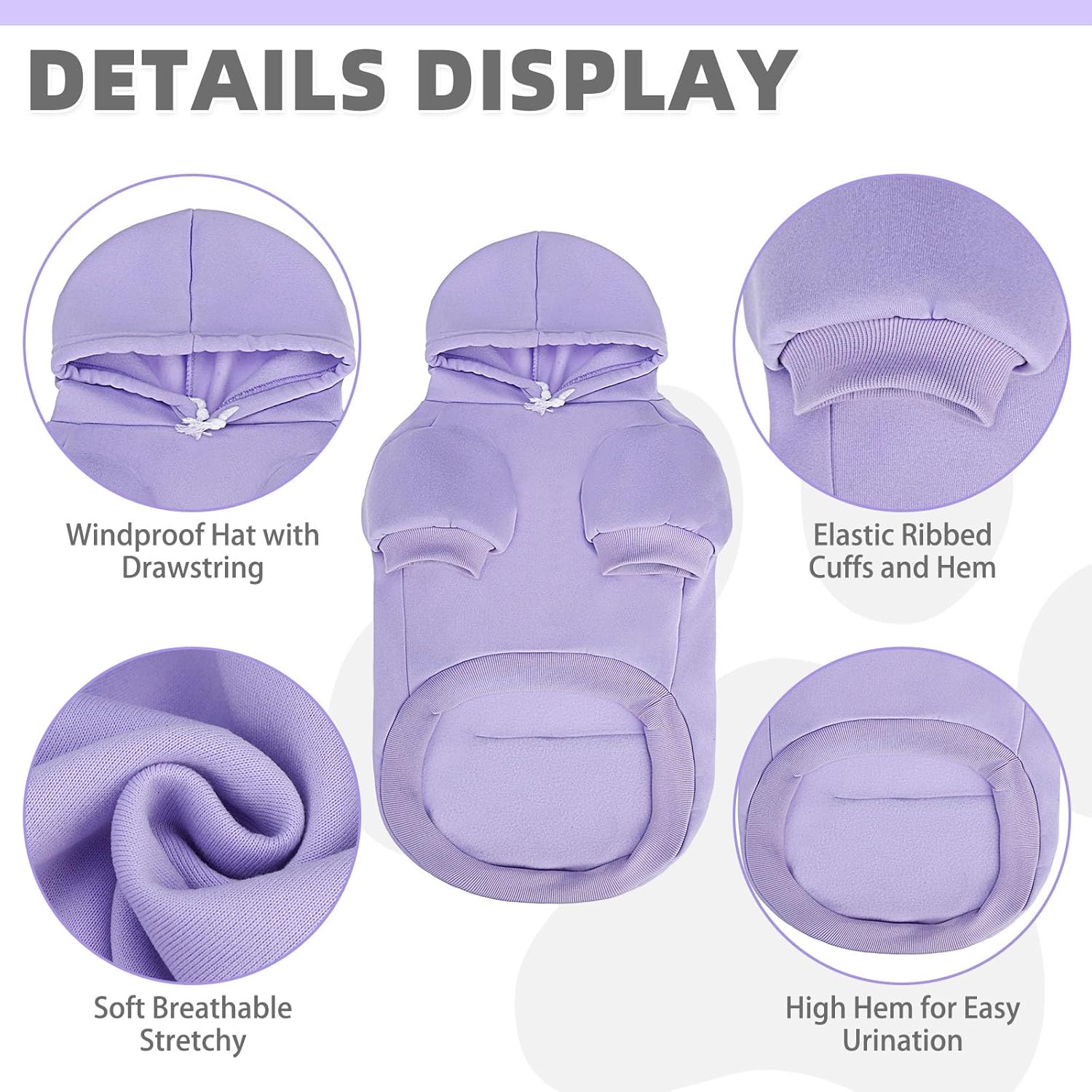 KOOLTAIL Basic Dog Hoodie - Soft & Warm Dog Hoodie Sweater with Leash Hole and Pocket, Pet Winter Coat, Cold Weather Clothes Sweatshirt for Small Medium Large Dogs Puppy Cat Boys Girls Lavender S