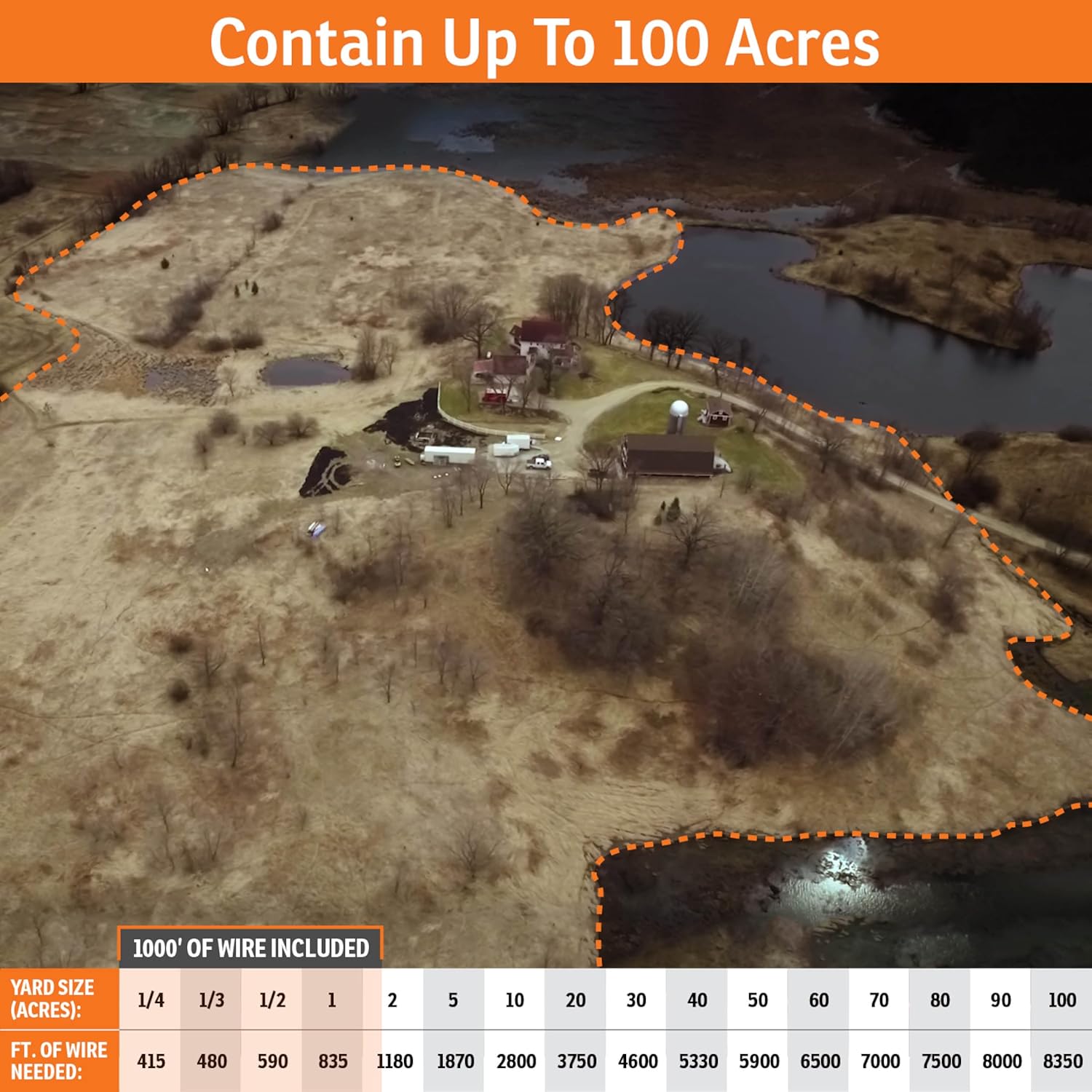 - EASY TO INSTALL: Containment kit includes everything needed to cover 1 1/3 acres of land for one dog; can be expanded to cover 100 acres with more wire and flags (sdf-wf)