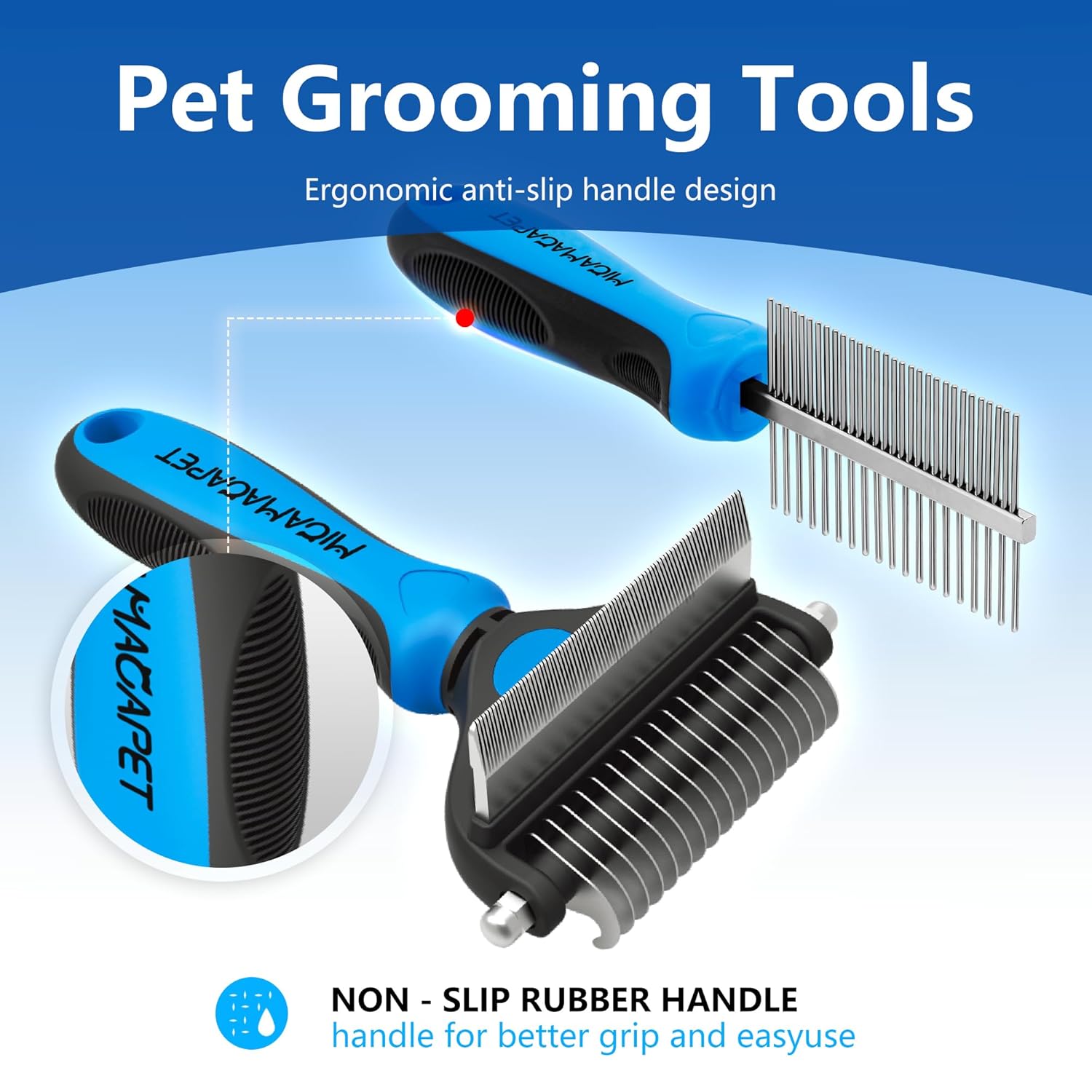 - 【Pet Grooming Set】: the set includes a 2-in-1 design de-shedding and shedding brush and a wide-toothed and dense-toothed double-sided comb, suitable for horses, long-haired dogs and all kinds of short-haired cats and dogs, rabbits and other pets' hair grooming, which can better satisfy your needs without having to buy separately, and it's the best combination of effective de-shedding and smoothing.