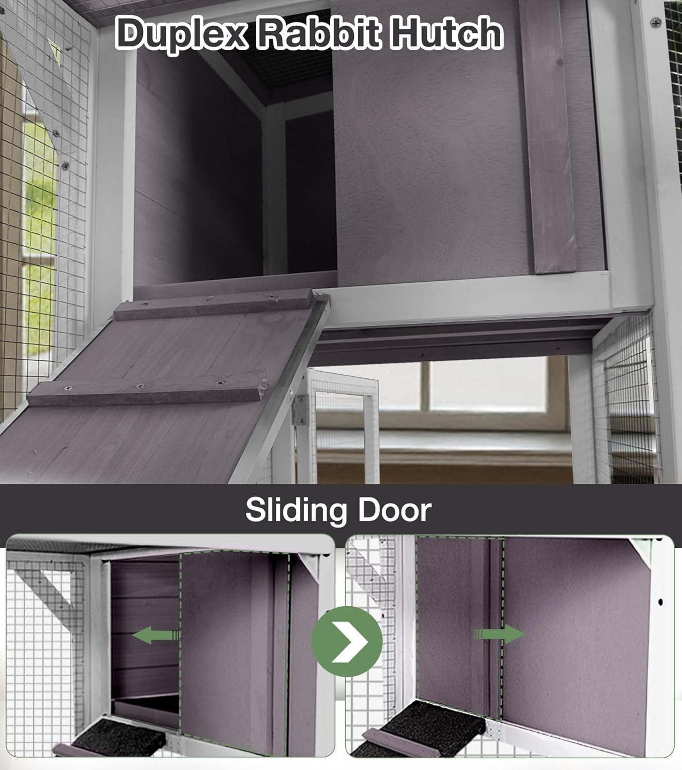 - 𝐃𝐔𝐏𝐋𝐄𝐗 𝐑𝐀𝐁𝐁𝐈𝐓 𝐇𝐔𝐓𝐂𝐇 𝐖𝐈𝐓𝐇 𝐋𝐄𝐀𝐊-𝐏𝐑𝐎𝐎𝐅 𝐓𝐑𝐀𝐘𝐒 - This 2-story bunny hutch includes 2 sliding trays with gap-free wooden baffles, preventing leaks and simplifying waste removal. Ideal for indoor bunny cages and outdoor rabbit hutch setups