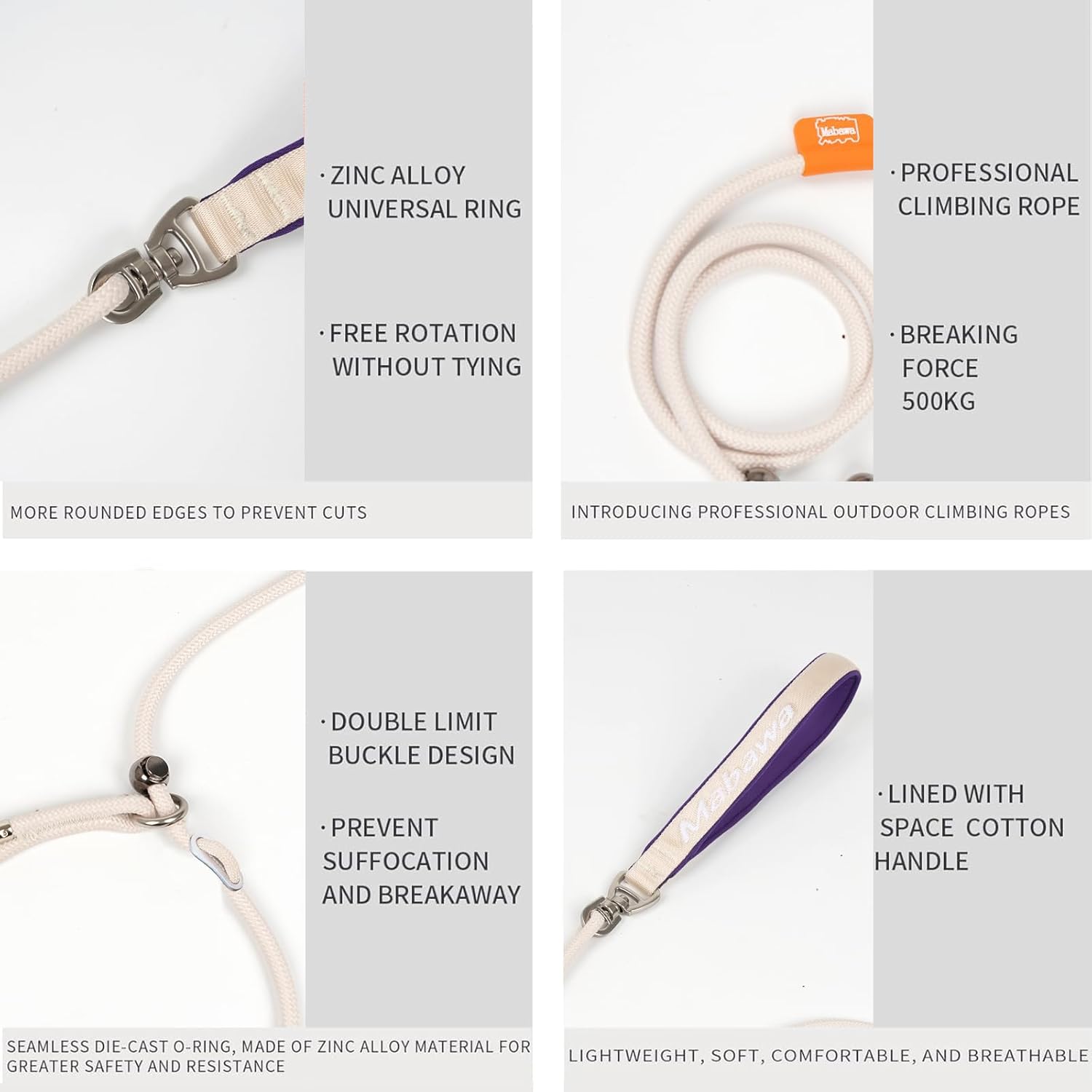 - 【Double Limit Design】: Heavy duty rope dog leash has 2 metal stoppers, which are anti-suffocation and anti-escape, and can easily stop the dog from pulling and will not cause harm to the dog. No-pull training, correcting bad behavior and controlling it in a short period of time, this chew proof leashes for dogs is effective for most dogs.
