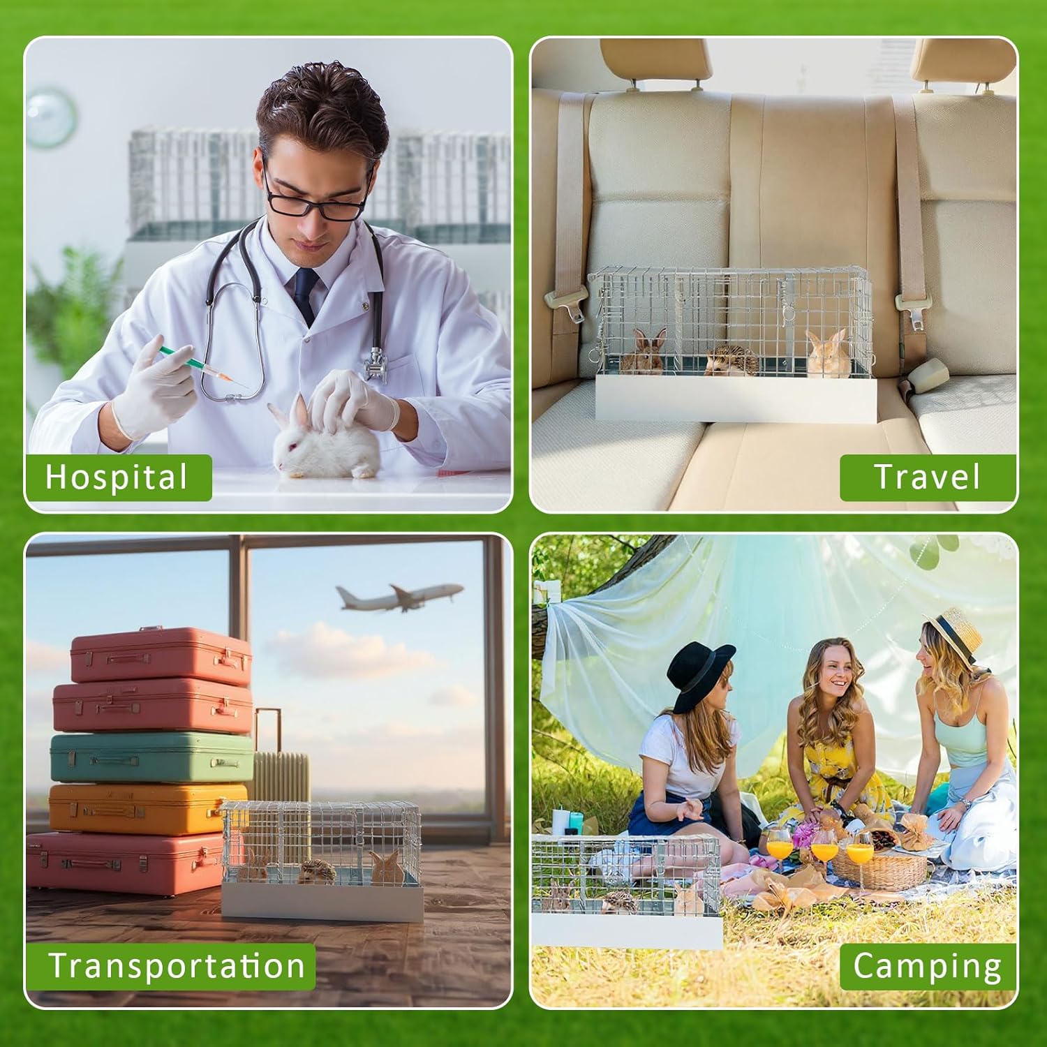 - Easy Transport with Carry Handles: designed for both short trips and extended outings, this bunny transport cage comes with sturdy handles on both sides for effortless carrying. Remove the divider to create a larger shared space when transporting more than one rabbit at a time. Ideal for travel, vet visits, outdoor events, or even as a temporary indoor pen