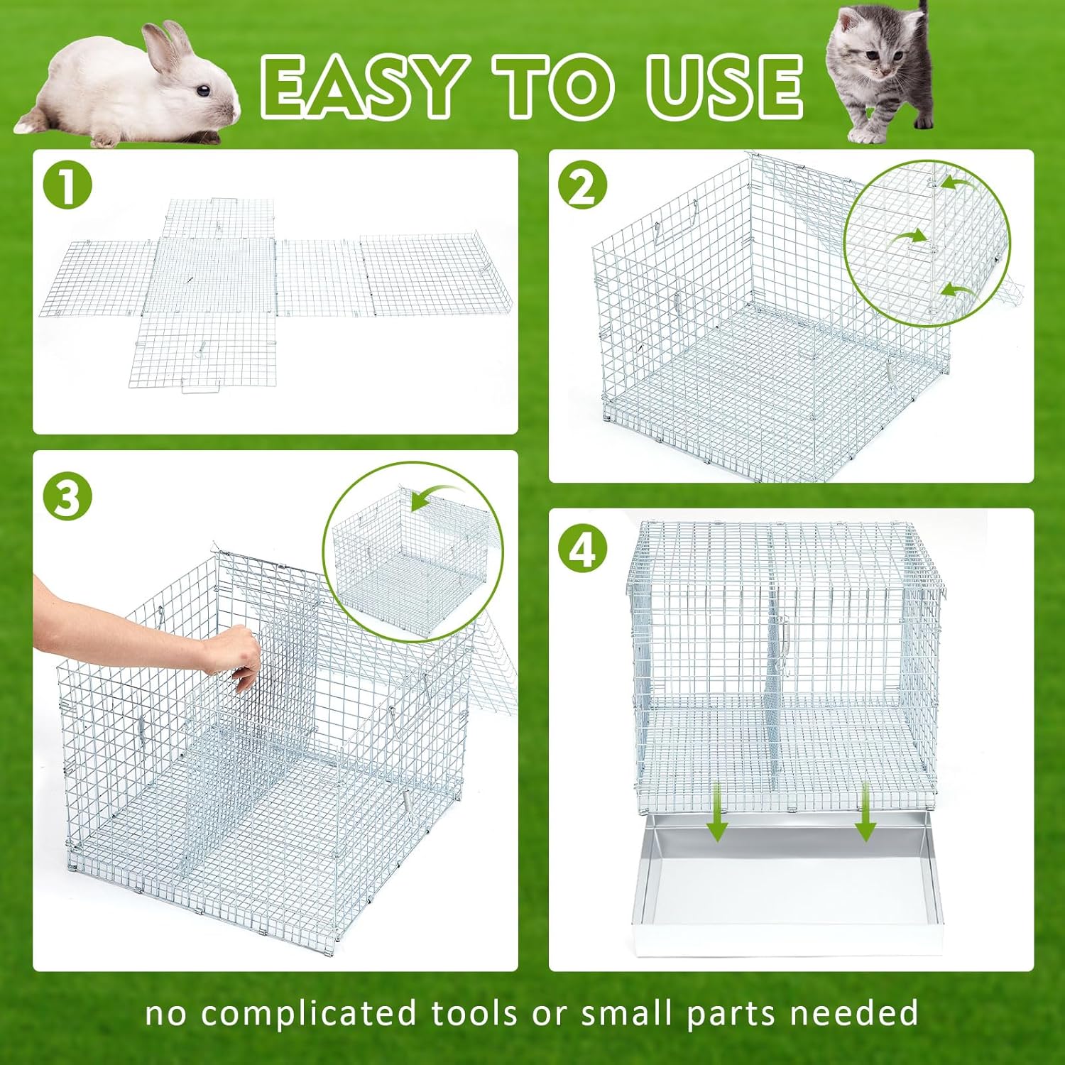 - Quick Setup & Foldable Storage: no complicated tools or small parts needed—this collapsible rabbit cage snaps together easily with built-in clips. When not in use, fold it flat for compact storage. A user-friendly setup makes it great for on-the-go families or first-time pet owners