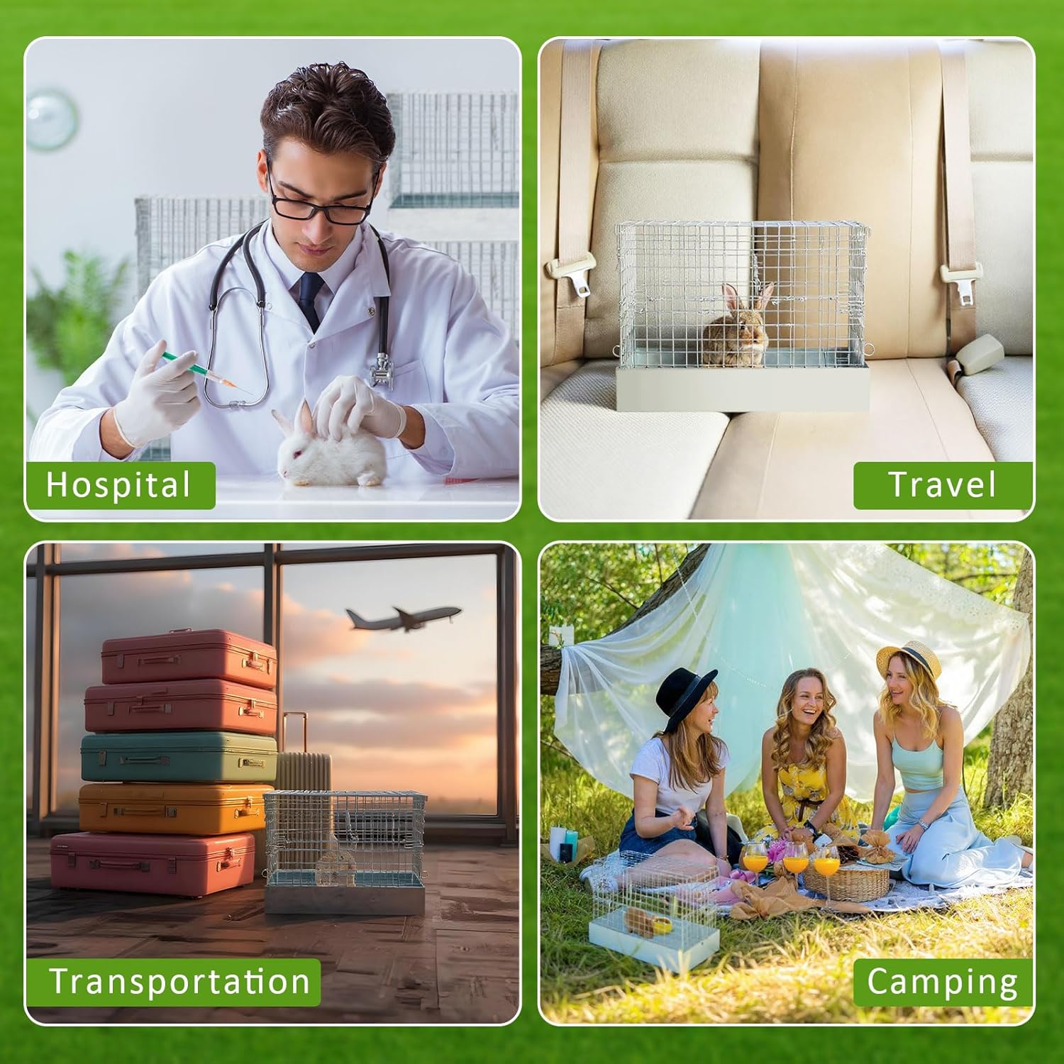 - Rabbit Cage Set: this no-divider rabbit cage offers an open layout, giving your bunny plenty of space to stretch, move, and relax during travel or temporary housing. Ideal for single rabbits or bonded pairs, the open compartment design makes it easy to monitor your pet and reduces stress during transport