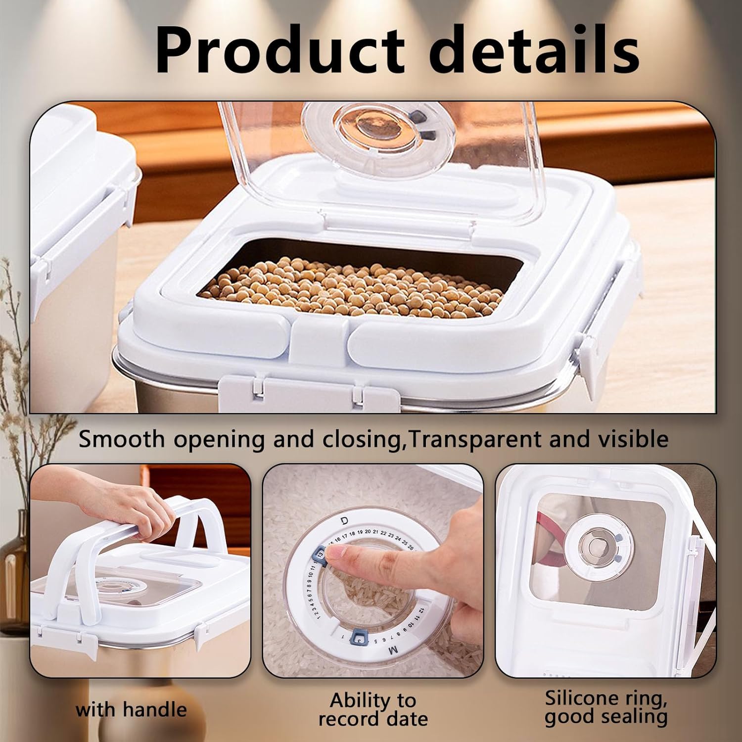- Food Container with Time Recording: This pet bin is designed with a time recording dial, clearly record food storage time. You can adjust the exact storage month and day at will, never miss the best period for food.