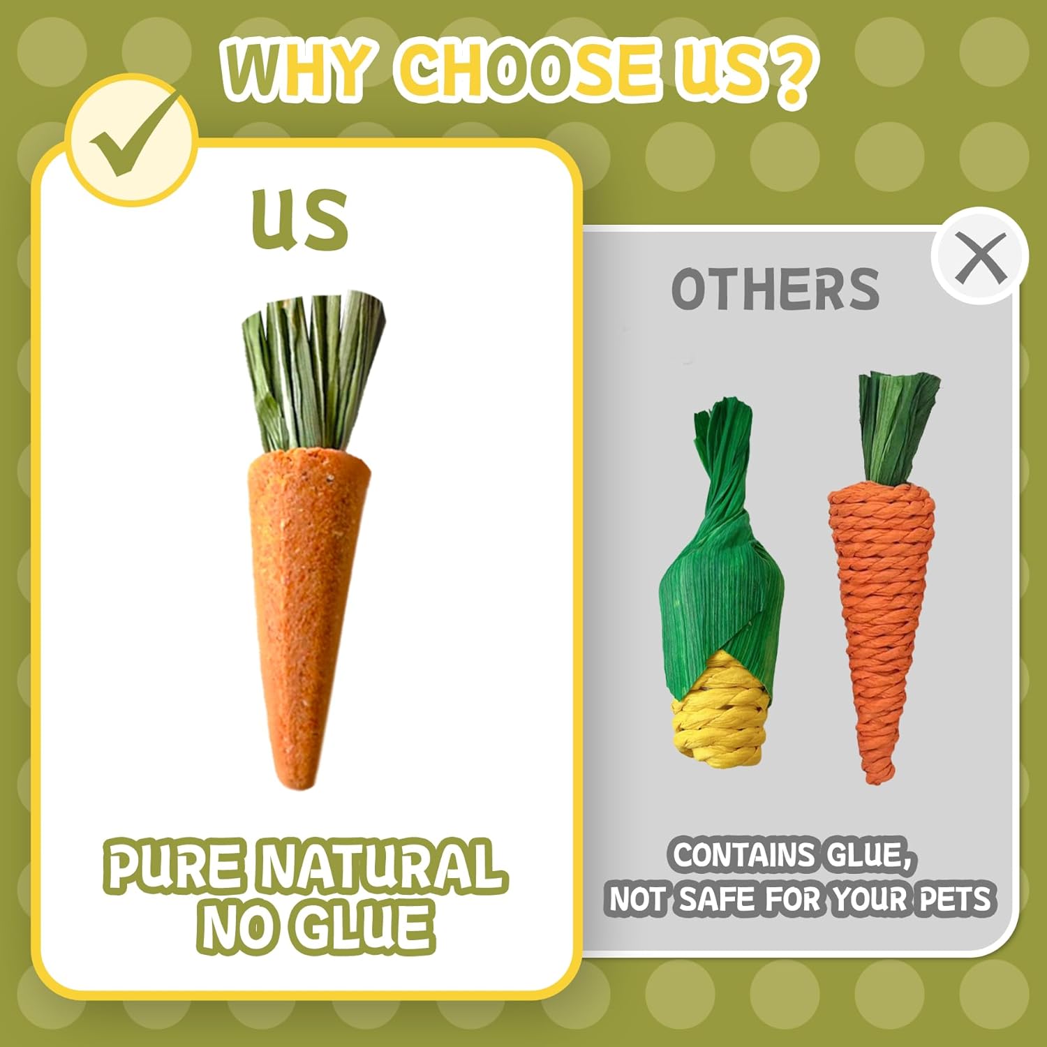 - 【Natural Material】Hamster stuff use natural materials like apple wood and timothy hay with no additives or pigments for ultimate safety; carrot-shaped grinding snacks made from wheat flour and carrot powder serve as ideal chew toys without any artificial adhesives.